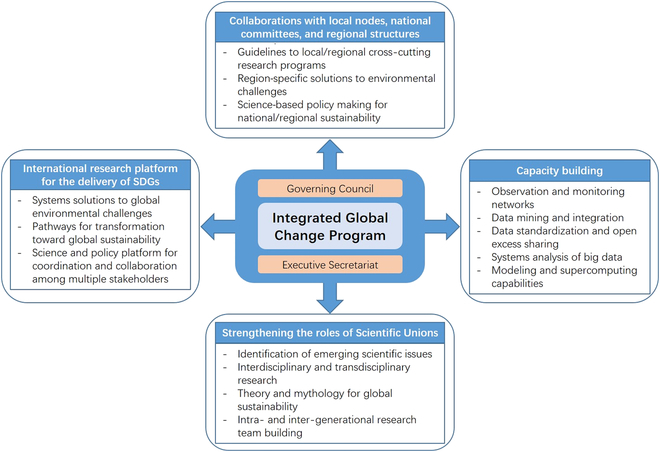 In the divided changing world, there is a pressing need for a global science program to promote the delivery of sustainable development goals (SDGs), even though Future Earth is an international science program that was launched to strengthen research and society collaboration to accelerate transformations to global sustainability. Future Earth’s role in and impact on setting the international science agenda on transdisciplinary research for global sustainability may not have been so clear to the research or broader stakeholder communities. Therefore, we present future directions that could help the global change program to play a more eminent role in strengthening global sustainability science to fill in research gaps and address uncertainties in our knowledge of global environmental risks, to establish a better science–policy interface for effective communication with policymakers and other stakeholders, and to contribute to innovative and sustainable solutions for human well-being and the environment.