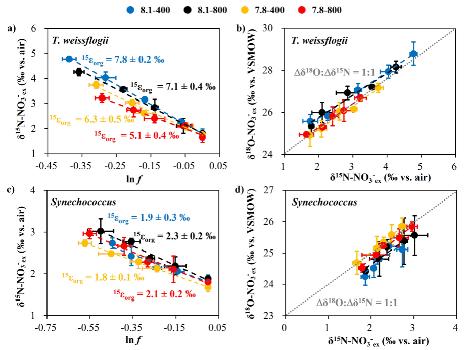 Changes in isotope fractionation during nitrate assimilation by marine eukaryotic and prokaryotic algae under different pH and CO2 conditions