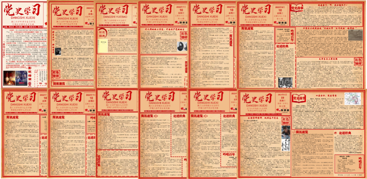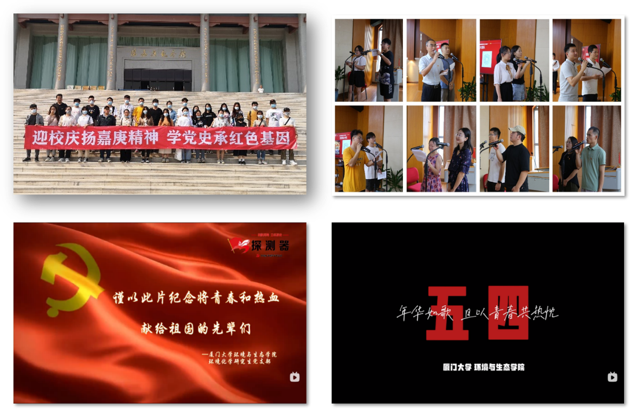 支部第一时间组织集体观看党的二十大开幕会。会后,支委会积极筹划、用心准备,带领全体成员逐条学习了党的二十大报告和新修订的《中国共产党章程》,组织专题党课针对报告内容展开展深入探讨,深刻领会绿色发展理念。除常规学习外,支部注重打造多维红色课堂,创刊红色读物《党史学习》,累积刊发12期,每月10日在学院官网、微信公众号和线下宣传栏同步推出。举办“初心光影放映厅”活动,放映红色影片《金刚川》,组织参观集美鳌园,协办“影像中的党史——红剧配音大赛”等形式活泼的学习活动。清明节期间,支部党员制作配乐诗朗诵主题视频,致敬英雄风骨,继承先烈遗志。五四青年节期间,制作的主题视频在学院官微推送,传承青年风采,发出当代青年最强音。形式多样的主题教育活动促进支部党员进一步学深悟透党的二十大精神。