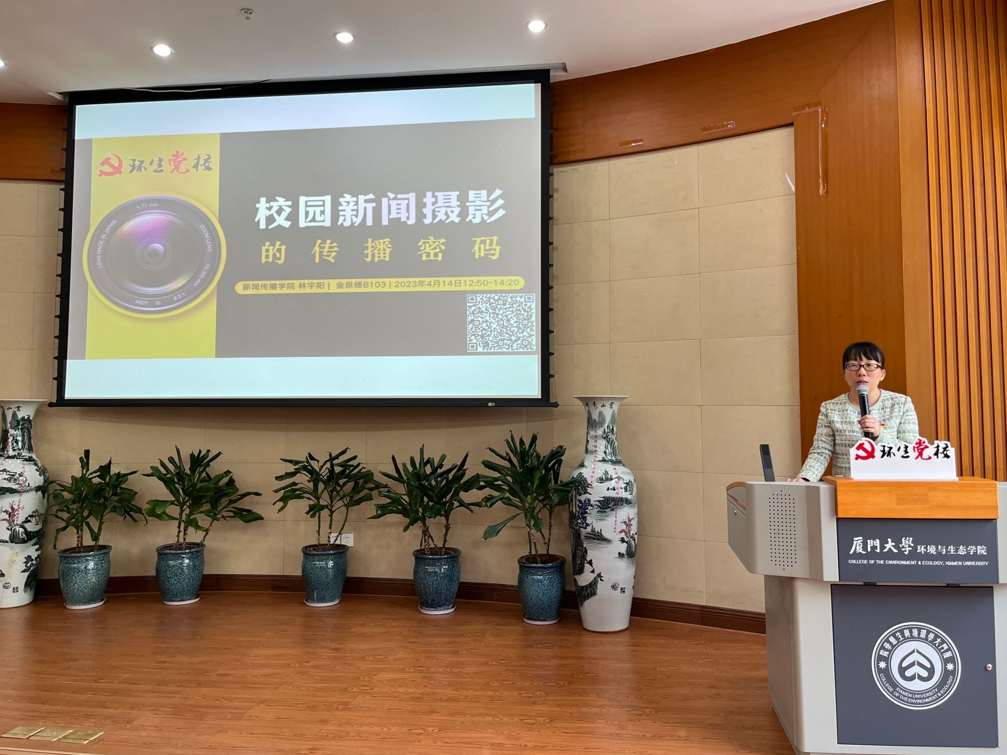 4月14日中午,我院在金泉楼B103面向学院师生党员和宣传骨干开展新闻摄影专题培训。本次培训以“校园新闻摄影的传播密码”为主题,邀请厦门大学新闻传播学院2021级硕士生林宇阳担任主讲人。培训由院党委副书记刘莉颖主持。