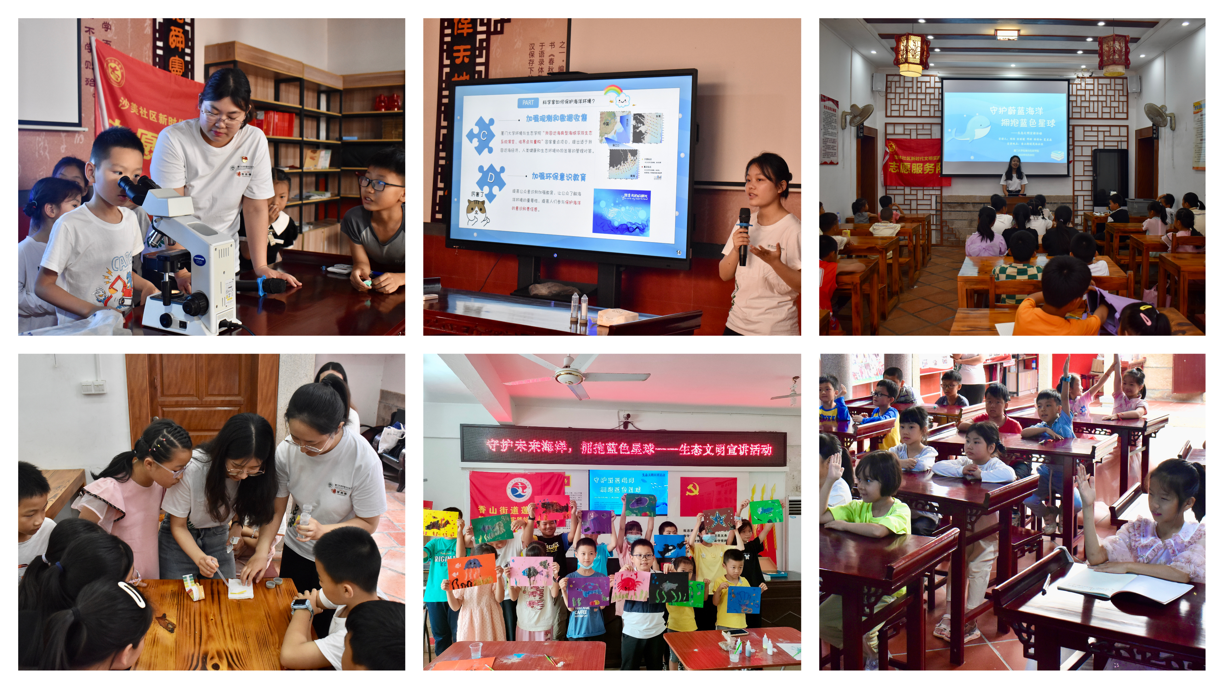 为科普与宣传海洋知识,传递生态文明理念,在学院党委指导下,海洋环境生物学研究生党支部、环境保护协会、学院青年志愿者协会、国家重点研发计划项目“我国近海典型海域浮游生态系统演变、临界点与重构”项目组共同承办了“守护蔚蓝海洋 拥抱蓝色星球”生态文明宣讲活动。5月20日,生态文明宣讲团走进沙美社区、茂林社区、莲河社区为社区小学生带来了海洋知识宣讲活动,促使孩子们了解与热爱海洋。