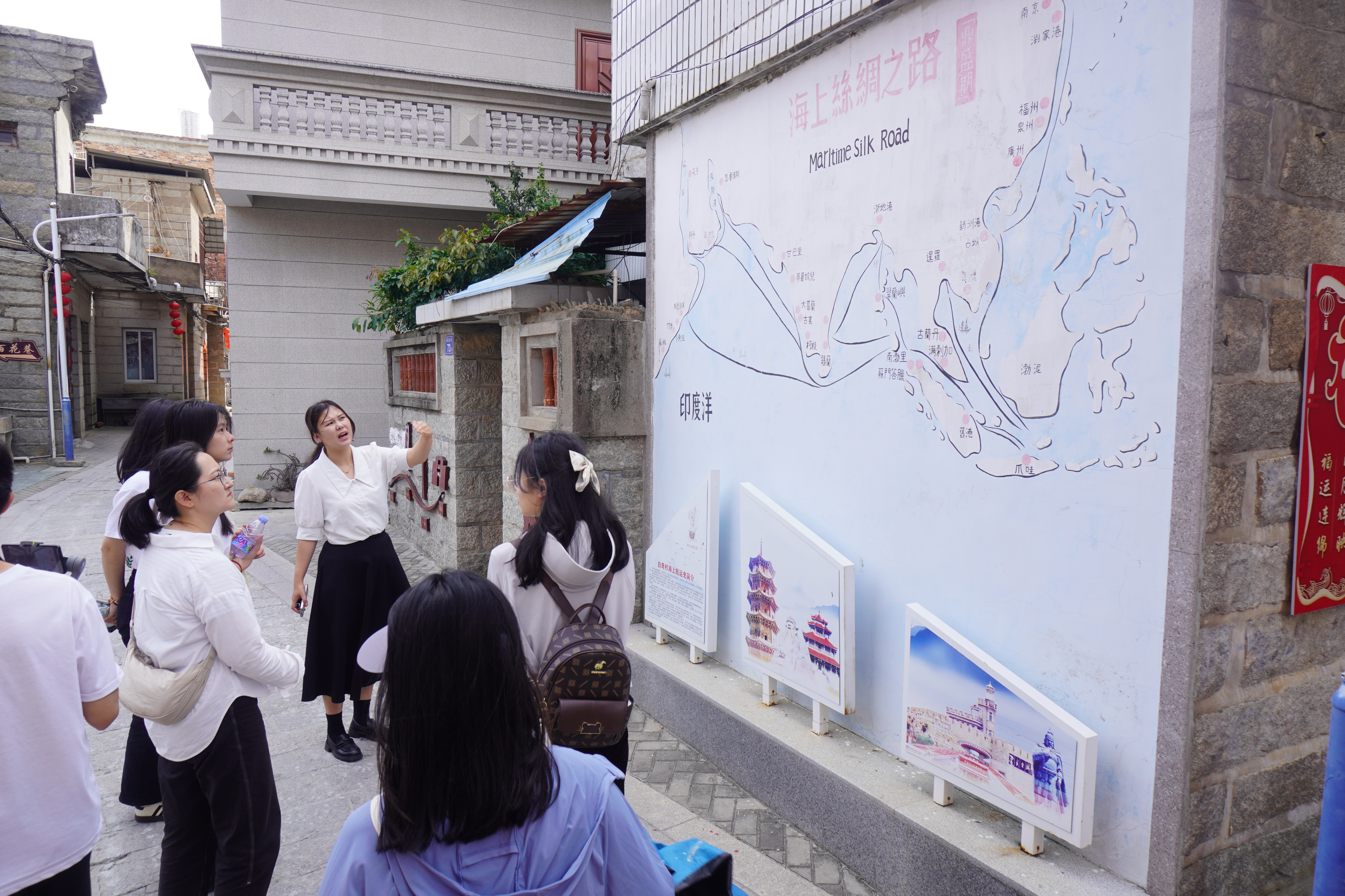 第三站,同学们前往白奇古街、接官亭和百崎回族史馆,实地探索了民族乡村红色故事与特色民俗。白奇古街的石板路上,每一砖一瓦似乎都投射着历史的影像,街边阿拉伯商人的铜像,更是绘声绘色地复刻了当时的贸易盛况。在百崎回族史馆,成员们聆听了当地老一辈的红色故事,深入了解了回族人民在革命和建设时期的贡献。