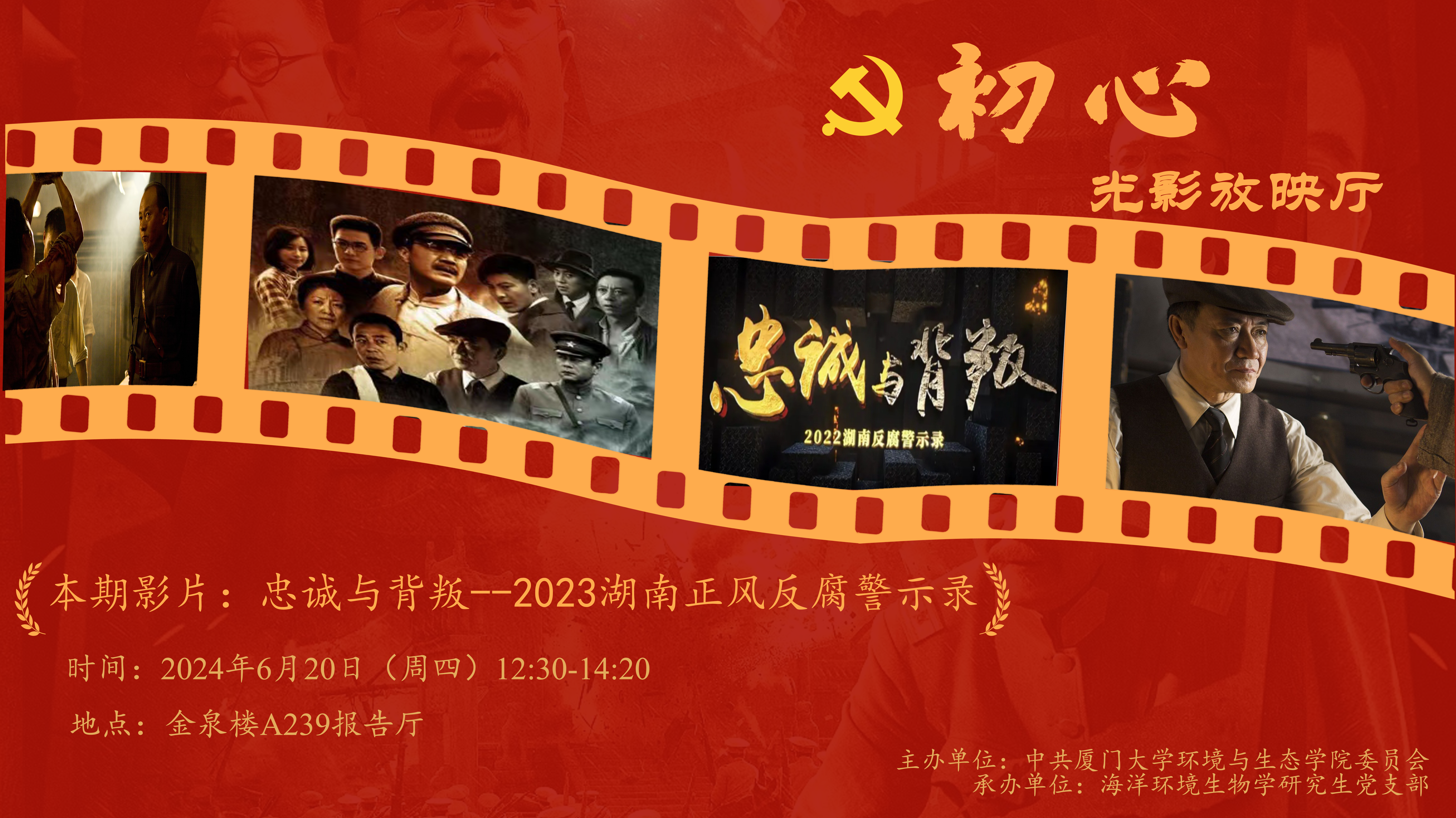 6月20日中午,海洋环境生物学研究生党支部在学院A239报告厅开展《忠诚与背叛--2023湖南正风反腐警示录》观影活动。