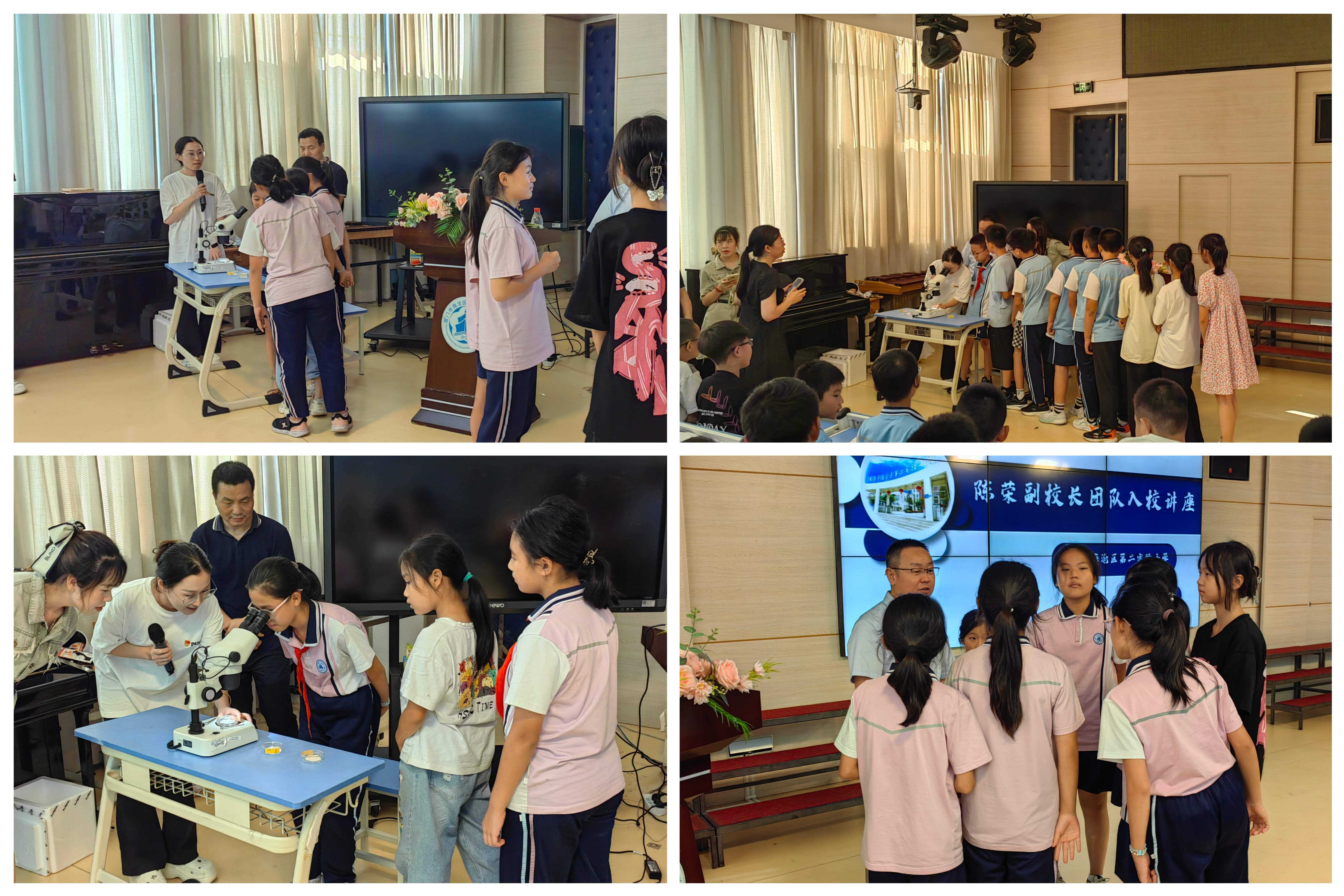 现场还组织小学生们使用显微镜观察了河口鱼体微塑料样品。在学院陈荣老师的指导下,学生们小心翼翼地操作着显微镜,仔细观察着样品中的微塑料颗粒。他们围坐在老师身边,热烈地讨论着微塑料的相关问题。陈荣耐心地解答着每一个疑问,引导学生们深入思考微塑料污染对生态环境和人类健康的影响。通过这次实践观察,学生们对微塑料有了更加直观和深刻的认识。