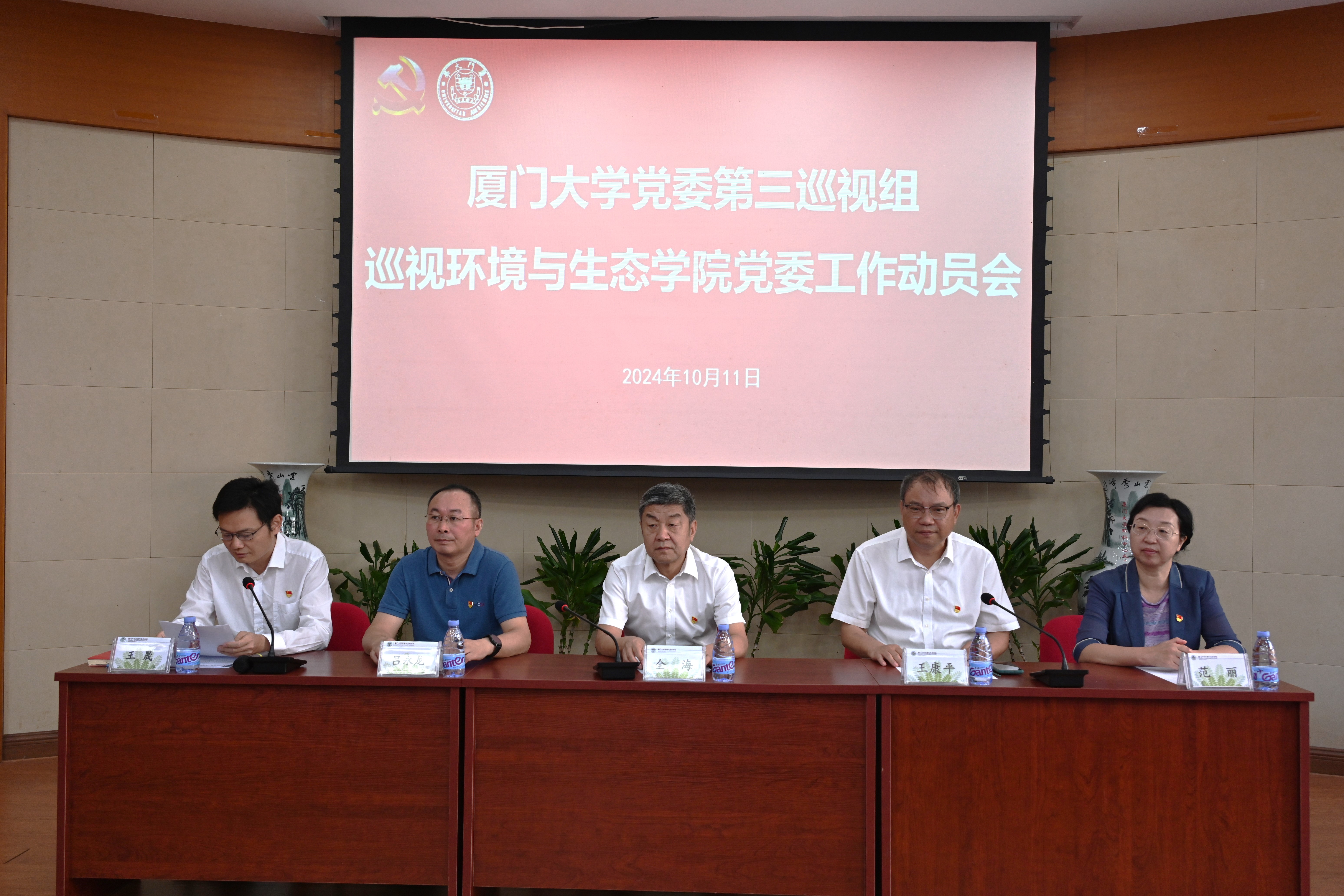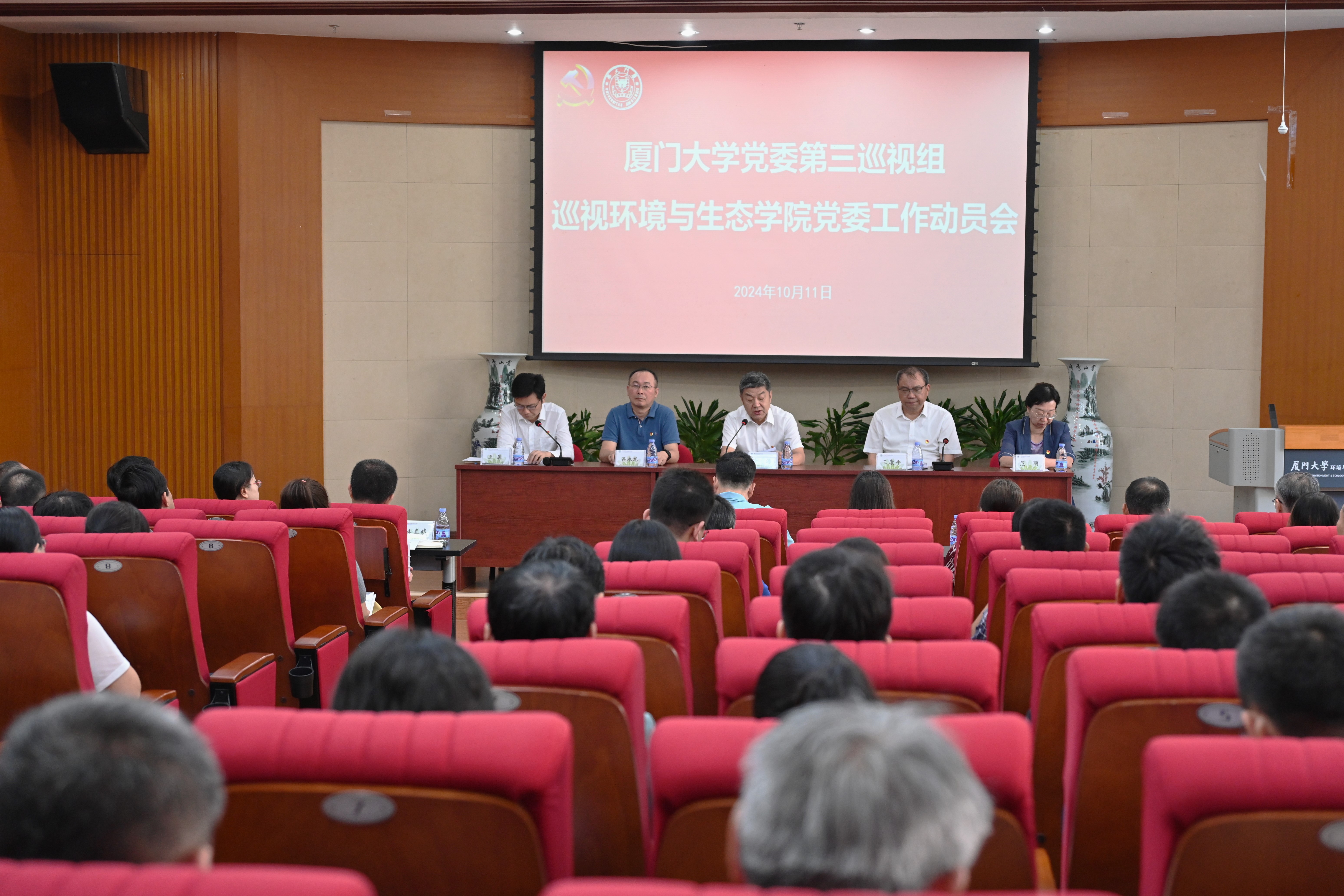 根据十二届校党委第三轮巡视部署,10月11日下午,校党委第三巡视组巡视环境与生态学院工作动员会在金泉楼B103报告厅召开。校党委副书记、纪委书记、国家监委驻厦门大学监察专员全海,第三巡视组组长王康平、副组长范丽,巡视办主任洪真裁,第三巡视组其他成员,环境与生态学院全体领导班子成员以及在职教职工代表参加大会。会议由学院党委书记王晟主持。