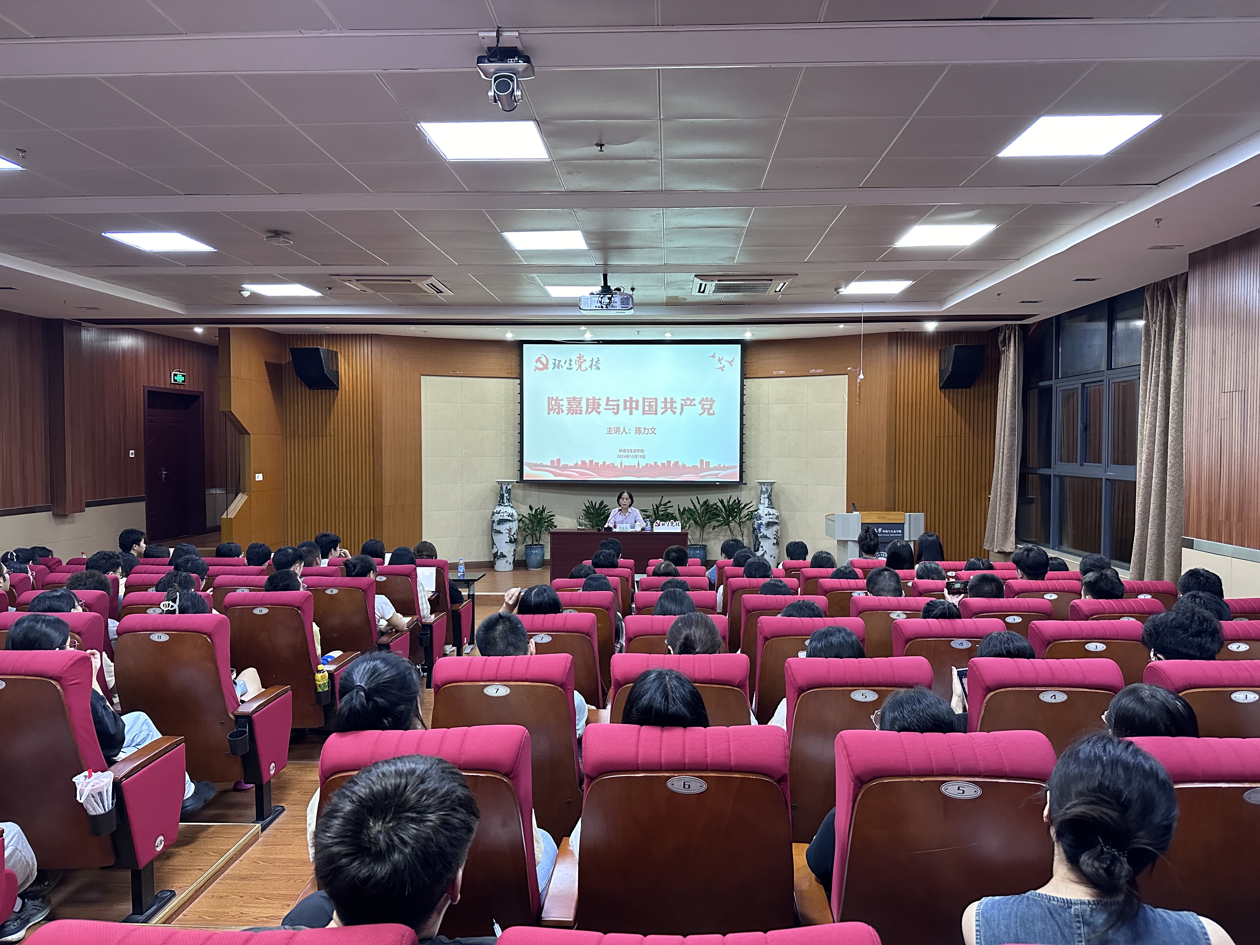 简短的开班仪式后,厦门大学原党委副书记、关工委顾问陈力文老师应邀为学员们进行第一场培训:《陈嘉庚与中国共产党》主题讲座,王晟主持讲座并为陈力文老师颁发“环生党校”讲座纪念牌。