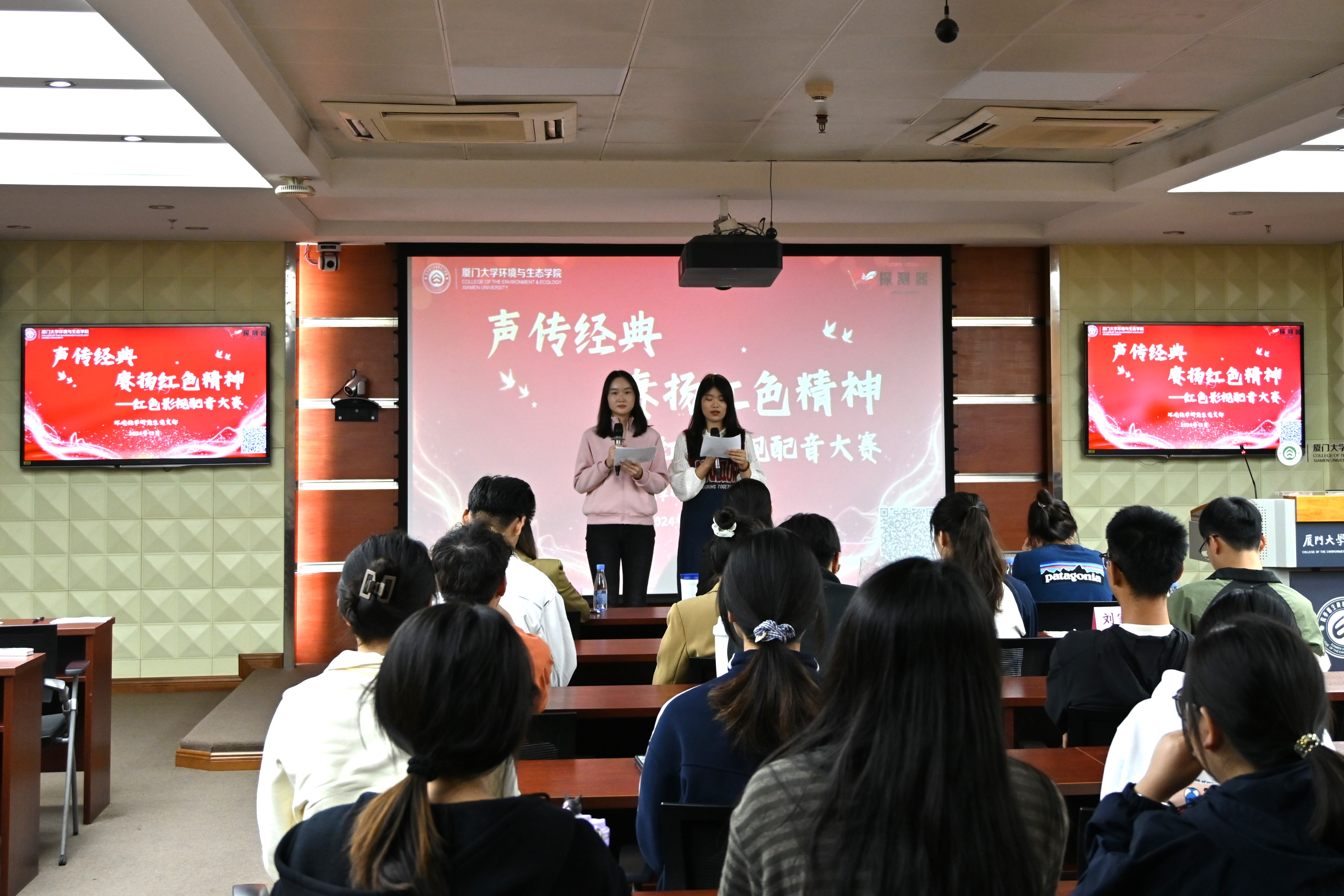 12月5日下午,我院环境化学研究生党支部在金泉楼A239教室举办“声传经典,赓扬红色精神”红色经典影视配音比赛。出席本次大赛的评委有党委副书记王旖旎、党务秘书张璐婧、团委副书记黄怡平以及兄弟党支部书记,支部全体党员参加活动。