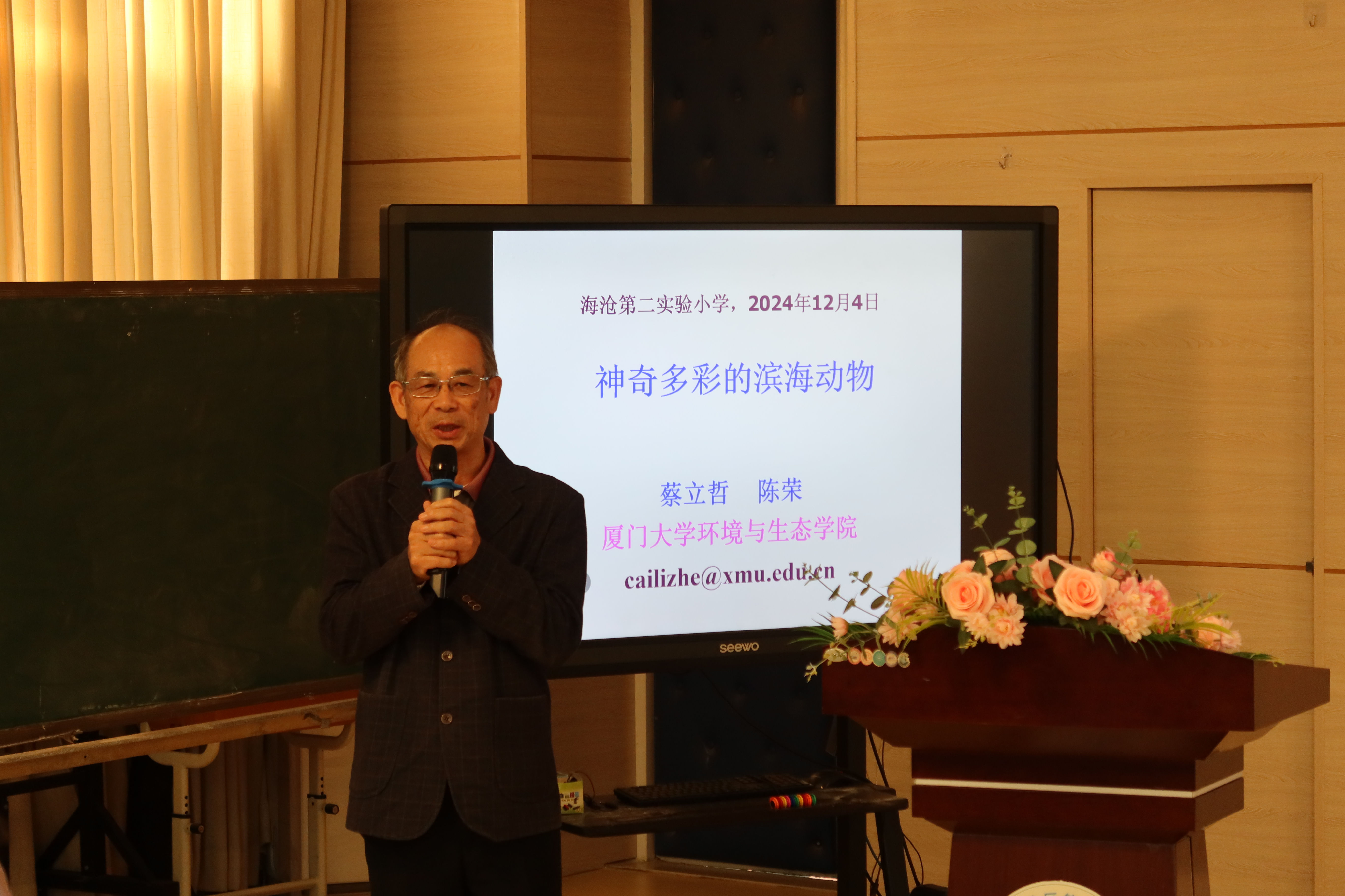 12月4日下午,“把美丽中国讲给你听”生态文明科普大讲堂走进厦门海沧第二实验小学开展科普讲座,退休教工党支部书记蔡立哲教授为四年级的学生们呈现了一场生动有趣的科普讲座——《神奇多彩的滨海动物》。