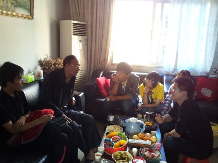 同学们围坐在郑老师周围,和郑老师一起喝茶吃花生,攀谈起来,询问郑老师的生活状况和娱乐活动等等,郑老师也问起大家的在校生活情况,让交谈显得更加自然,展现出一副其乐融融的景象。