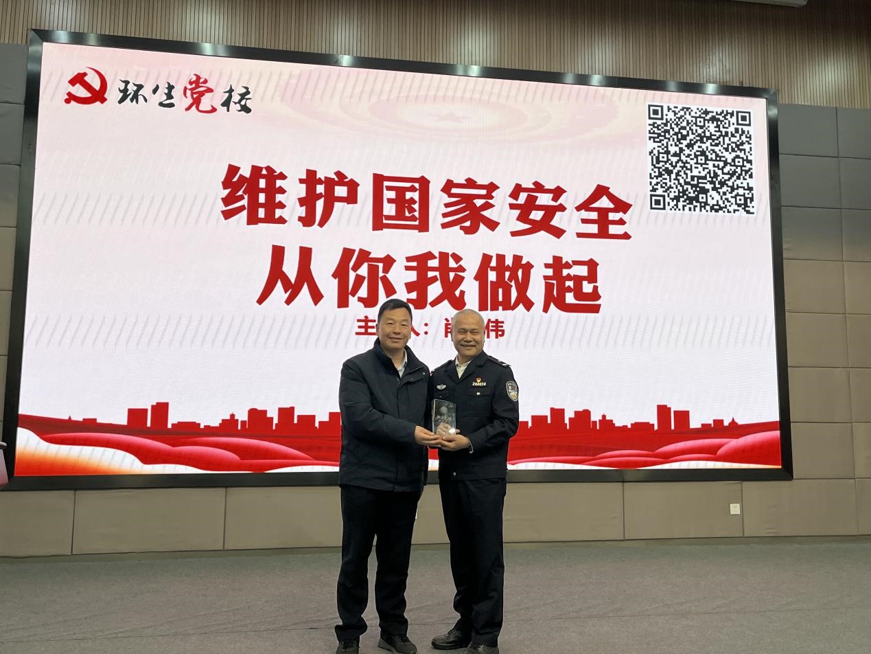 讲座开始前,蔡虎堂向大家简要介绍了肖殿伟丰富的工作经历和卓越的职业成就,并代表学院向肖殿伟颁发“环生党校”讲座纪念牌。