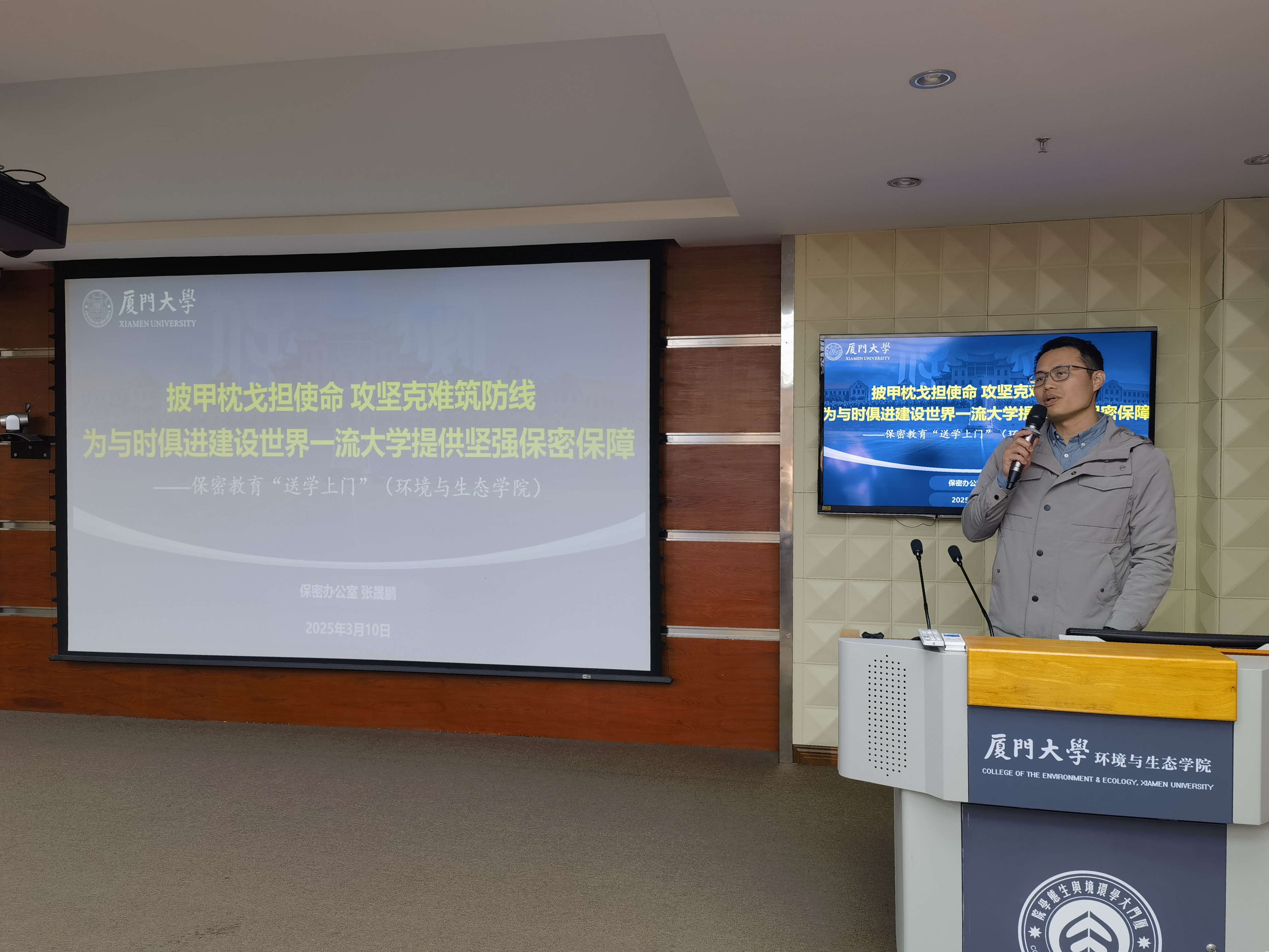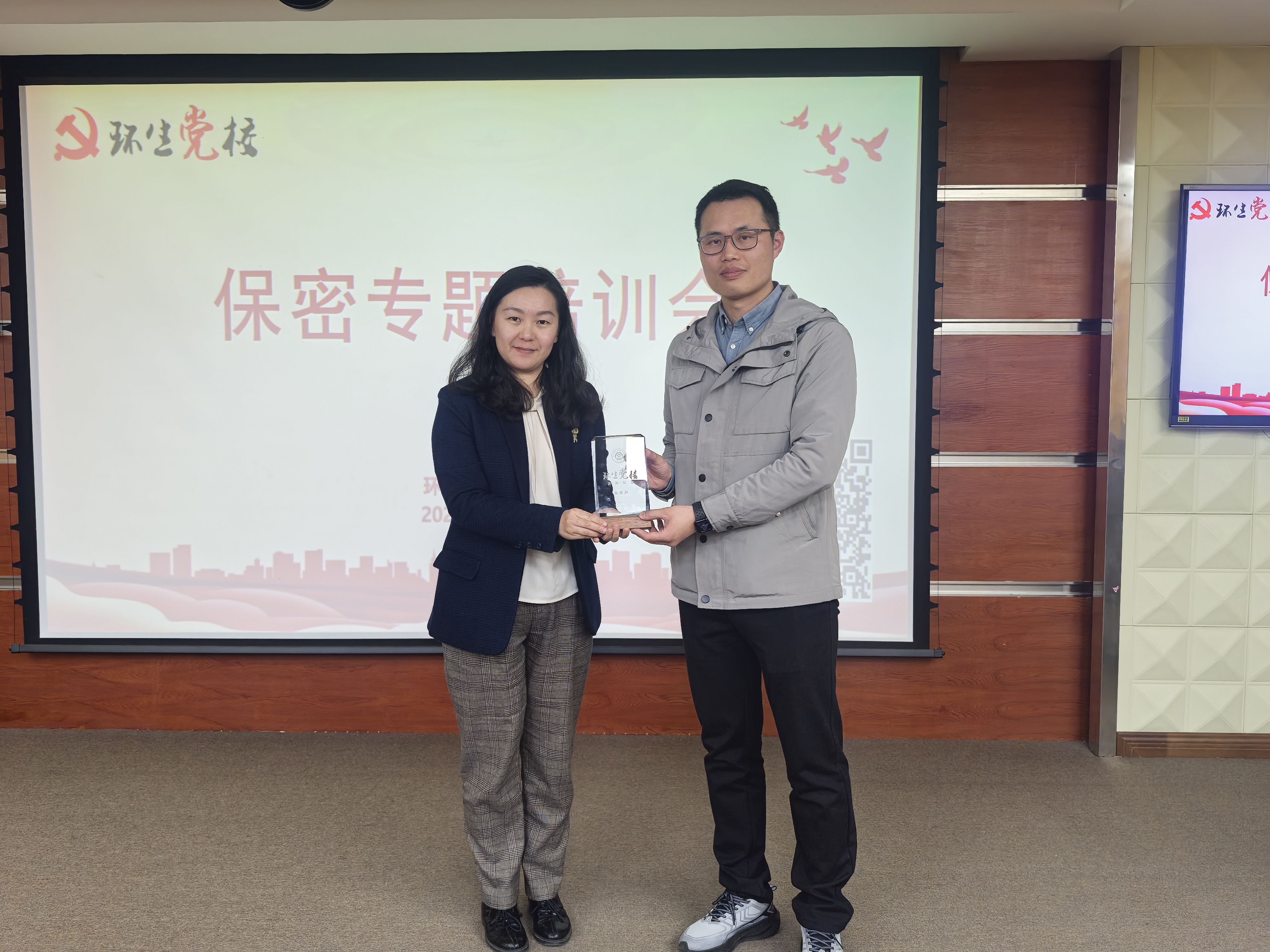 此次培训不仅丰富了大家的保密知识,更增强了保密意识和责任感。讲座结束后,王旖旎代表学院向张晟鹏颁发了“环生党校”讲座纪念牌。她表示,希望全体师生能够将培训所学落实到日常行动中,时刻保持警惕,共同为学院和学校的保密工作贡献力量,携手筑牢校园安全防线,确保各项工作在安全、稳定的环境中顺利开展。学院将持续强化保密工作,不断完善相关机制,确保保密工作贯穿于教学、科研及日常管理的各个环节,营造安全稳定的学院环境。