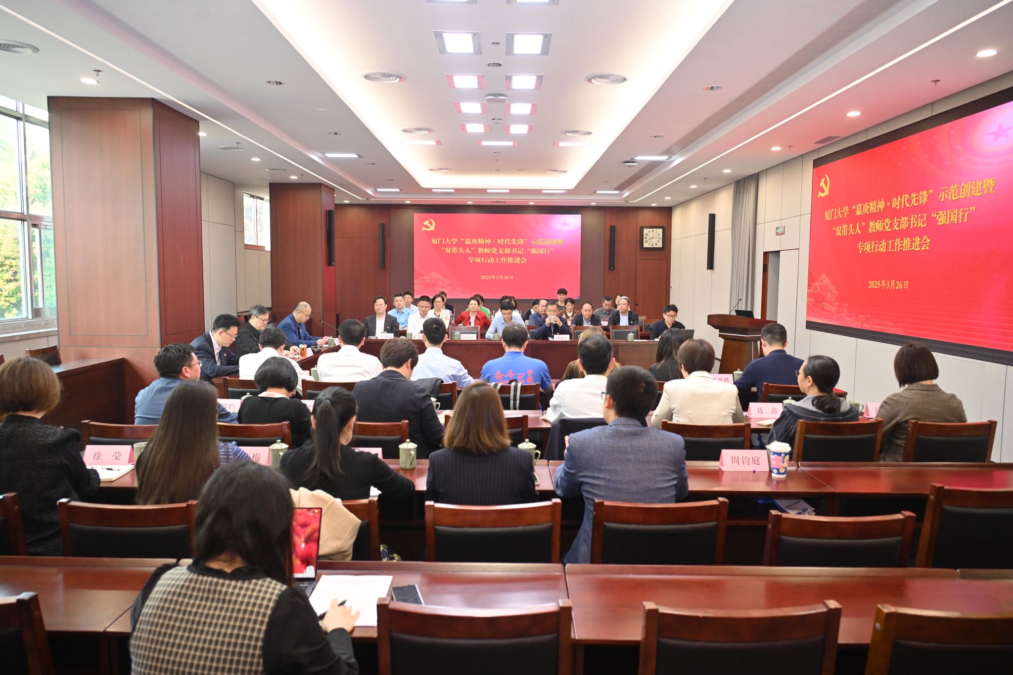 3月26日上午,学校在颂恩楼220会议室举行“嘉庚精神·时代先锋”示范创建暨“双带头人”教师党支部书记“强国行”专项行动工作推进会。校党委书记、中国科学院院士张荣讲话,校党委常务副书记林东伟主持,校党委副书记孙理出席会议。