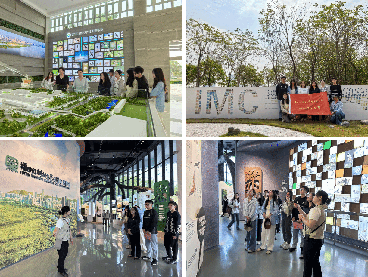 4月9日上午,师生一行来到福田红树林自然保护区并参访国际红树林中心。通过近距离观察红树植物的形态和适应性,同学们系统认知福田红树林自然保护区的生态特征,将城市红树林保护与生物多样性维护的抽象理论转化为鲜活实践,直观认识到红树林保育对全球生物多样性的战略价值,也对国际红树林中心“生态优先、科技赋能、全球共建”的战略定位有了更深入的感知。