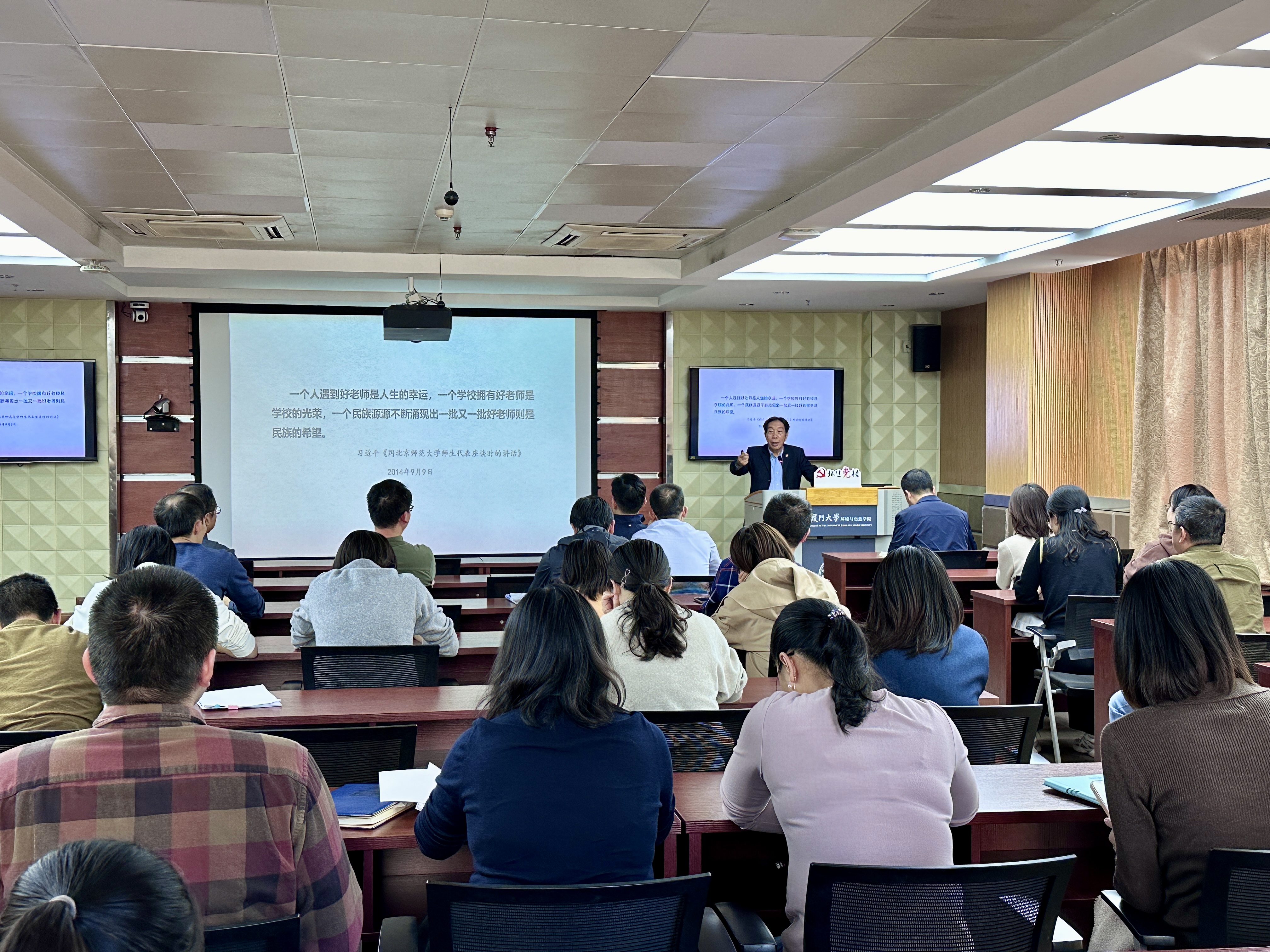 2020年至今,学院党委连续4年举办师德师风大讲堂,组织教师深入学习习近平总书记关于师德师风的重要论述,加强教职工思想政治工作,持续推进师德师风建设。下一步,学院党委将继续带领全院教师深入学习贯彻习近平新时代中国特色社会主义思想和学校第十二次党代会精神,落实立德树人根本任务,把思想价值引领贯穿教育教学全过程和各环节,不断深化“三全育人”长效机制和弘扬教育家精神,以更加昂扬的精神风貌,将学习成果转化为立足本职岗位作贡献的实际行动,在与时俱进建设世界一流大学新征程中勇毅前行。