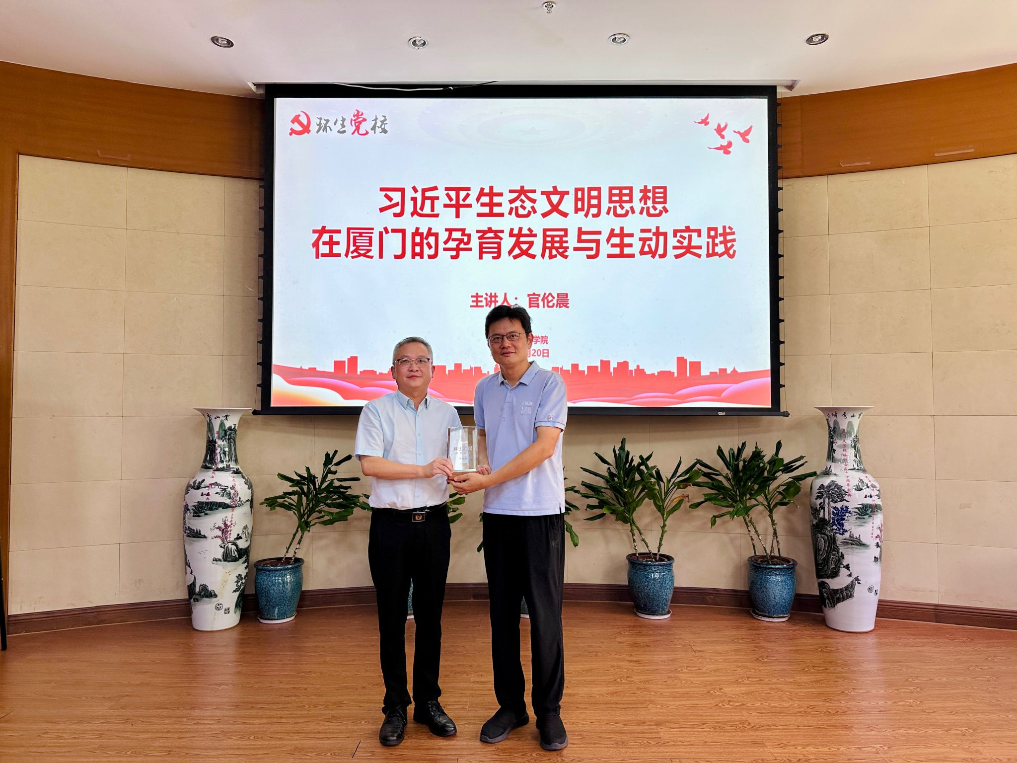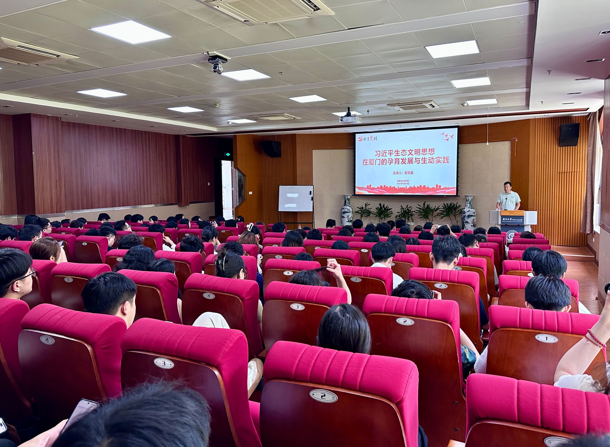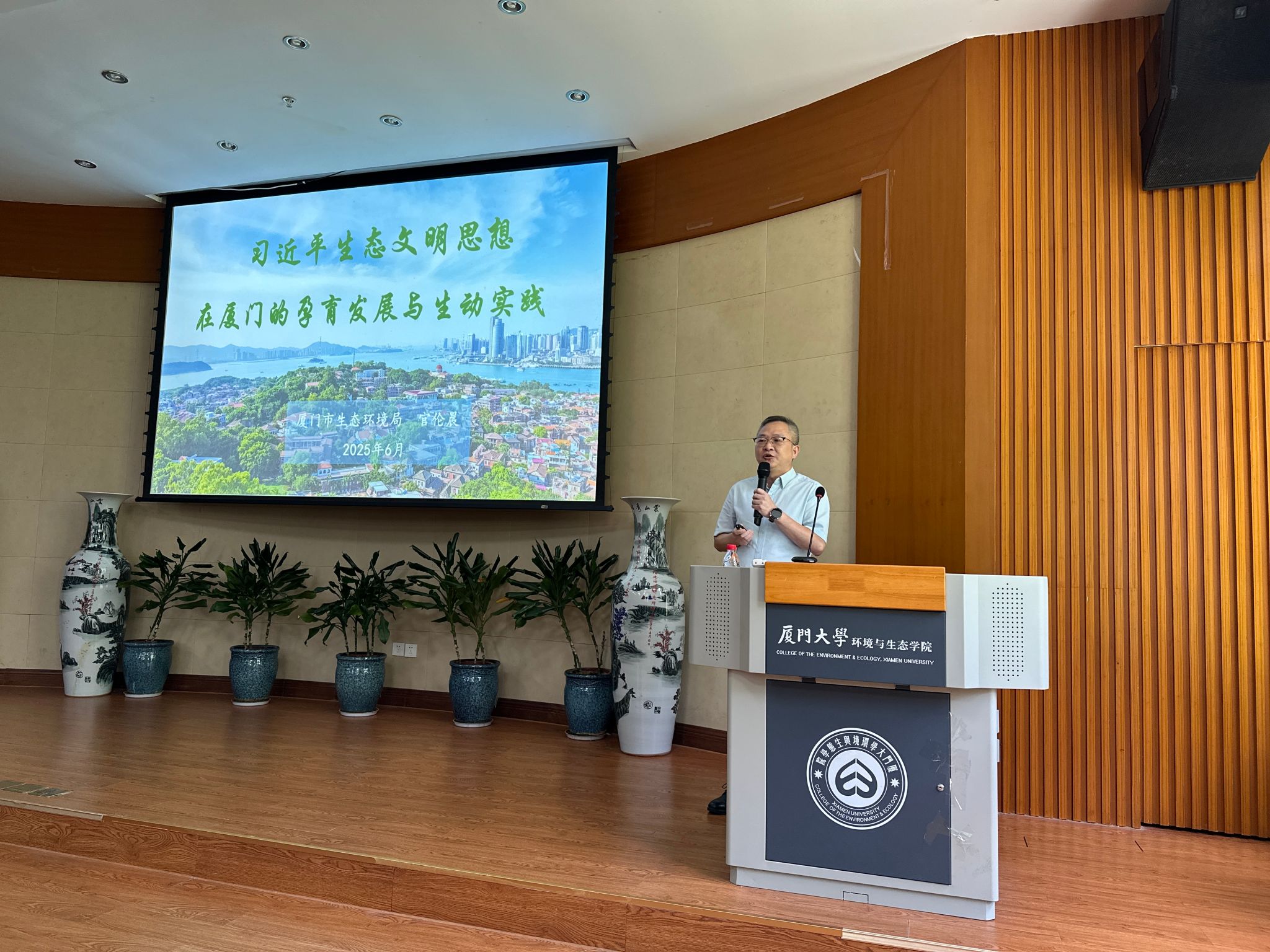6月20日下午,“环生党校”2025年第六讲在金泉楼B103报告厅开讲,学院特邀厦门市生态环境局综合与科技处(监测处、改革处)处长官伦晨作《习近平生态文明思想在厦门的孕育发展与生动实践》专题讲座。全院百余名师生到场参加,讲座由学院党委副书记蔡虎堂主持。