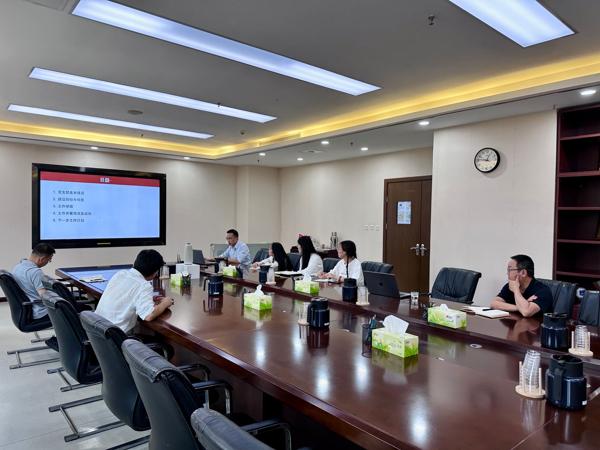 会上,两位支部书记分别就近期党支部工作开展情况进行了分享。根据前期制定的建设目标,各支部对标对表制定了具体工作举措,两位支部书记不仅详细汇报了工作成效,也深入剖析了存在的问题,提出整改思路和措施。