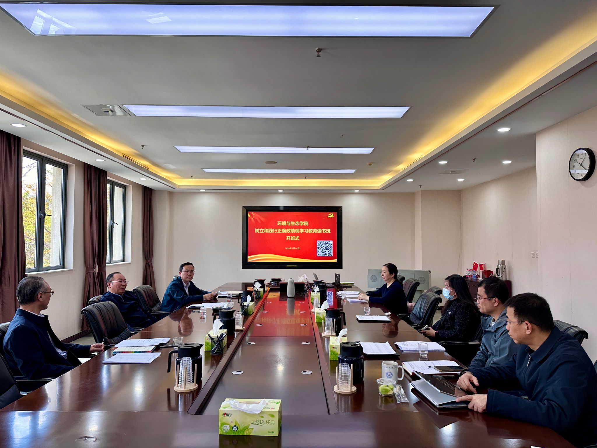 会议强调,要突出政治引领,把牢发展方向,聚焦党中央明确的重要学习参考资料,结合学院实际,将生态文明理念融入学科建设、科研创新和人才培养全过程。要聚焦学院使命,强化责任担当,进一步优化学科布局,推动科研成果向服务国家生态文明建设转化,培养具备家国情怀、专业本领和实践能力的环境领域人才。要坚持问题导向,深化整改落实,对照“政绩观偏差”问题,结合学院实际查摆不足提出整改方向,完善学院高质量发展评价体系。要弘扬实干精神,凝聚发展合力,领导干部要带头树立“功成不必在我”的境界和“功成必定有我”的担当意识,一张蓝图绘到底,一任接着一任干。全院师生要以“钉钉子精神”落实习近平总书记要求,以实际行动践行正确政绩观,为国家生态文明建设和美丽中国建设贡献环境与生态学院的智慧与力量。