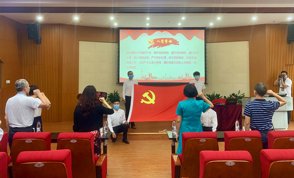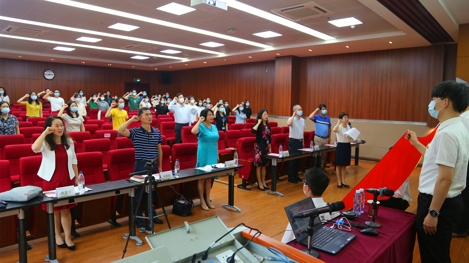 开班式由师生党员重温入党誓词拉开帷幕。现场党员师生全体起立,面对鲜红的党旗,高举右拳,字字铿锵,句句有力,重温入党誓词。