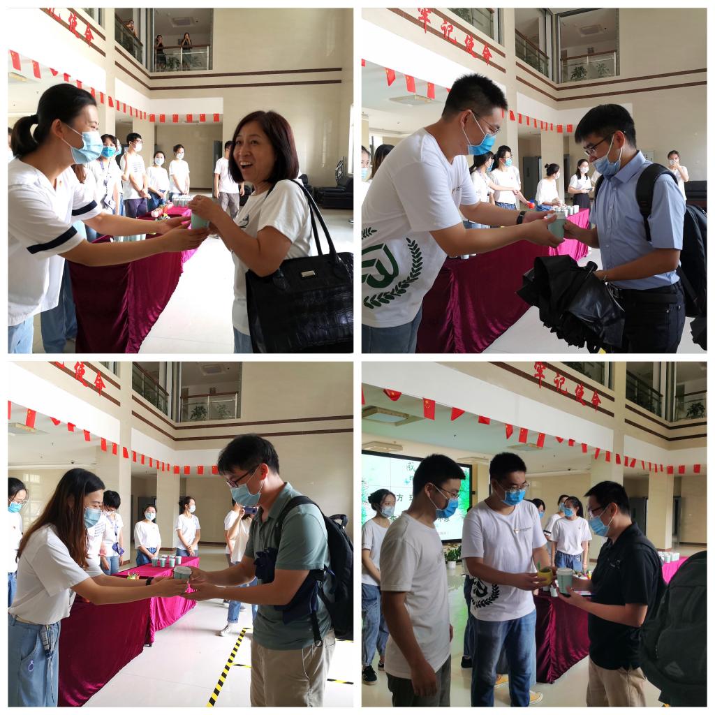 9月10日上午,党支部成员在金泉楼一楼大厅为到学院的老师们敬上一杯热腾腾的清茶,送上祝福,表达感谢。递上茶杯的一刻,十几名学生齐声喊道:“老师,您辛苦了!”“环保感恩卡”融入了同学们的“小心思”——用回收的落叶通过叶拓的方式制作而成。学生们还为各位老师送上了精心培育的绿意盎然的盆栽。
