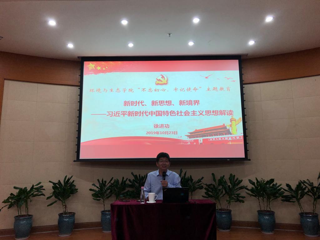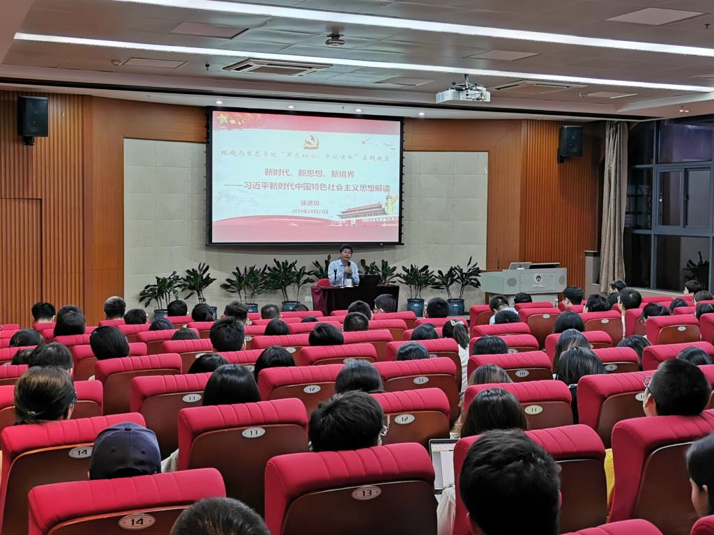 10月23日晚,我院在金泉楼B103报告厅举办“不忘初心、牢记使命”主题教育特邀专家报告。受学院党委邀请,厦门大学党委常委、宣传部部长、马克思主义学院院长徐进功教授以《新时代、新思想、新境界——习近平新时代中国特色社会主义思想解读》为题,对习近平新时代中国特色社会主义思想进行了生动详尽的解读。学院党政领导班子成员、师生代表共160余人参加了本次学习。报告由学院党委副书记李静主持。