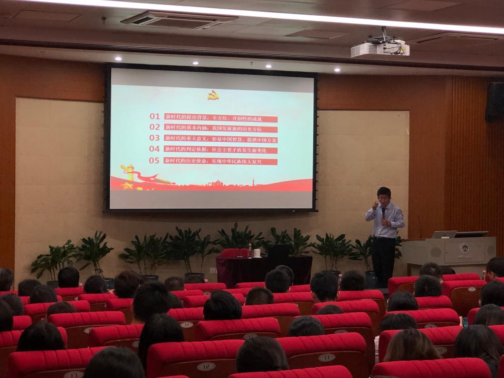 徐进功教授以幽默风趣的语言、生动的案例,结合自己多年的学术研究成果,从新思想的产生背景、形成历程、科学内涵、历史地位等多个角度对习近平新时代中国特色社会主义思想进行全面、深刻的解读。他指出,习近平新时代中国特色社会主义思想是对马克思列宁主义、毛泽东思想、邓小平理论、“三个代表”重要思想、科学发展观的继承和发展,是马克思主义中国化最新成果和中国特色社会主义理论体系的重要组成部分,具有丰富的科学内涵和精神实质。习近平新时代中国特色社会主义思想是新时代全方位开创性的成就,是对新形势下党和国家事业发展的一系列重大理论和现实问题的深刻回答。