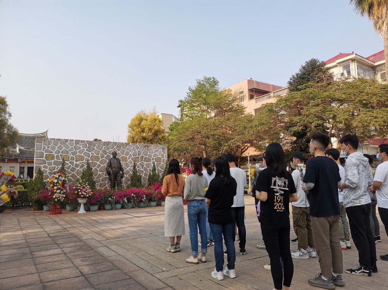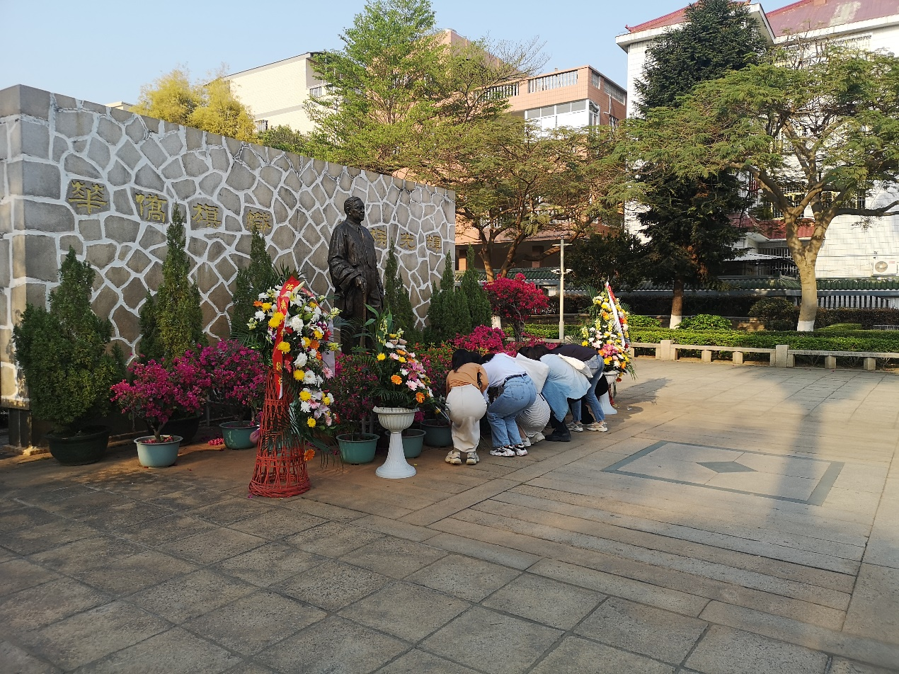 最后,同学们在陈嘉庚先生铜像前举行了简朴而庄严的祭扫仪式。全体人员首先向陈嘉庚先生铜像默哀、三鞠躬。随后,各支部代表向嘉庚先生铜像敬献花篮。现场其他人员依次向陈嘉庚先生铜像敬献鲜花,向嘉庚先生表达崇高的敬意和无限的哀思。