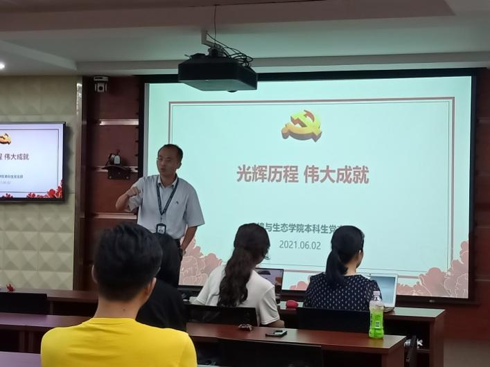 6月2日晚八点半,我院本科生党支部在金泉楼A239会议室开展以“学党史 听党话 跟党走”为主题的“固定党日+”活动。支部以微党课的形式围绕“光辉历程 伟大成就”进行学习与讨论。本次活动支部全体人员共同参加,由支部书记王安胜主持,李玮铖、甘少文主讲。