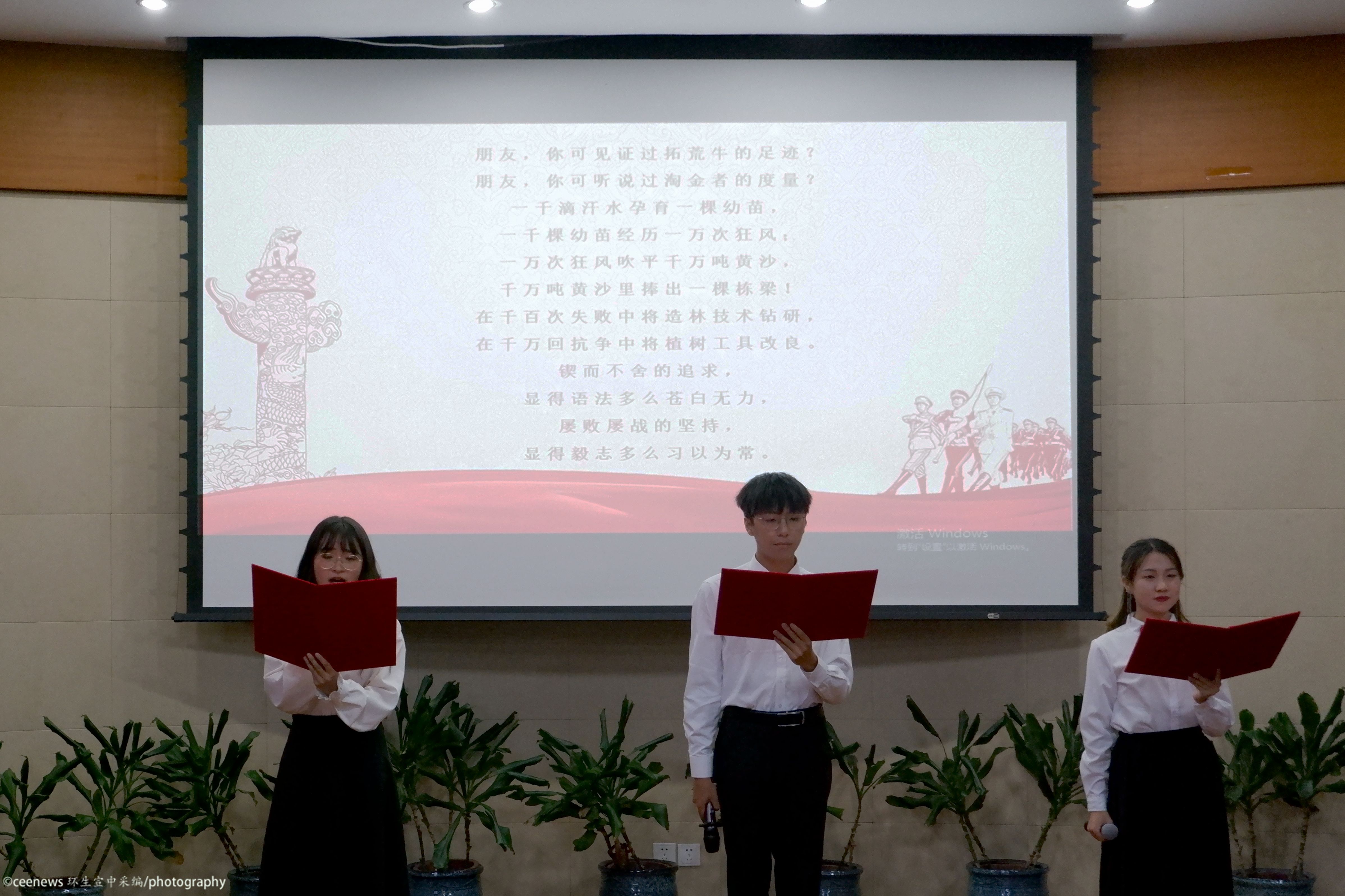 先辈们的革命精神生生不息,后人接上中华民族伟大复兴的重任,续写奋斗章程。2020级本科生第二团支部的表演《三代人•一片海》为同学们展示了塞罕坝精神。在“黄沙遮天日、飞鸟无栖树”的荒漠地上,数代塞罕坝人用青春、汗水和智慧,创造了荒原变林海的人间奇迹。
