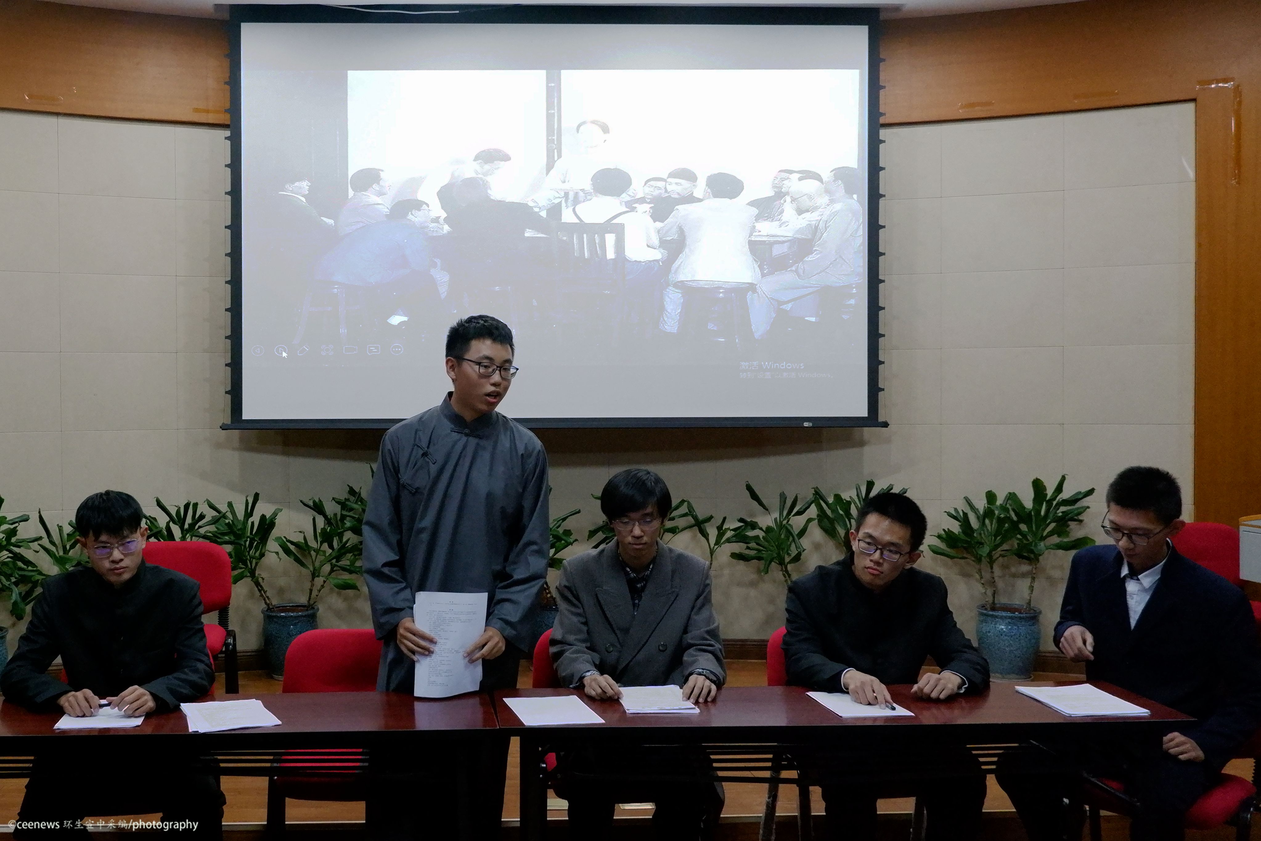 首先上场的是2021级本科生第二团支部。他们的节目《觉醒之路》再现了1915年到1921年这段国运飘摇、民不聊生的艰难时世,让在场所有人重新了解一百多年前的热血青年追求真理、燃烧理想的澎湃岁月。