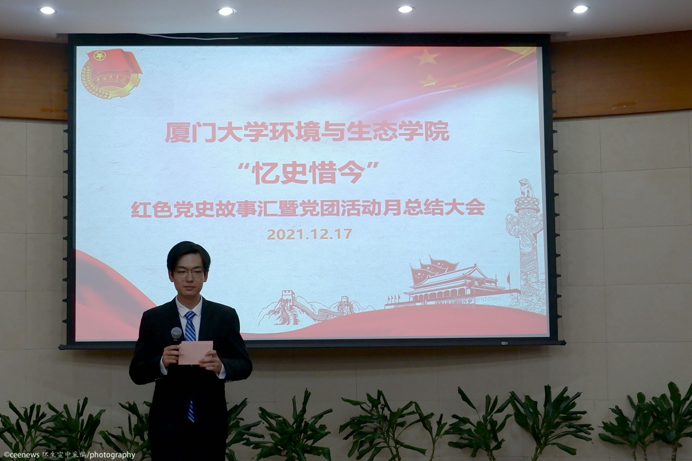 为弘扬革命精神,传承红色基因,我院于12月17日晚在金泉楼B103举办“忆史惜今”党史故事汇暨党团活动月总结大会。会议邀请翔安校区管委会副主任马龙、翔安校区团工委书记兼校团委副书记林蕊、能源学院辅导员施珩、航空航天学院学生会主席团成员邹浩、生命科学学院学生会主席团成员吴鸣涛、公共卫生学院学生会主席团成员高颢瑾,以及学院党委副书记蔡虎堂,2021级班主任叶从庭、冯明宝,院团委、院行政教工党支部和工程技术人员教工党支部老师,院2020级、2021级本科生参与大会。活动由王齐治同学主持。