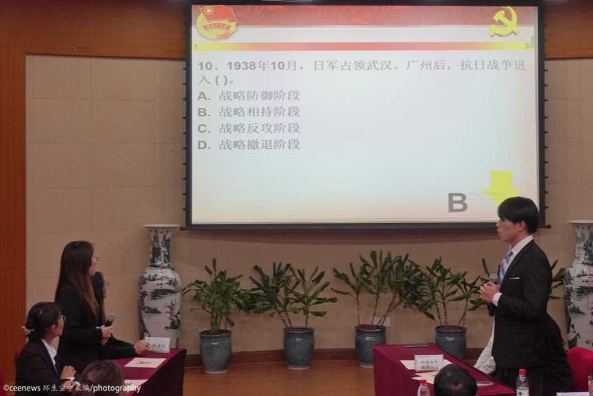 最后一轮比拼是“一站到底”,两队各一位选手轮流答题,直至其中一方答错为止,最后得分较高的队伍获胜。两支队伍你来我往,赛出了自己的能力,赛出了团队的风采。经过激烈的比拼,“社会主义接班人队”取得最后的胜利。