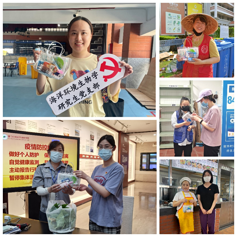 值此劳动节之际,环境与生态学院海洋环境生物学研究生党支部成员为疫情期间值守在厦门大学翔安校区的各业人员送上“爱心防疫包”,以表达对他们的感谢之情。他们为这个校园带来无尽的温暖,更教会我们要发扬和传承这种敢于逆行的抗疫精神。每一份付出,都值得被尊敬!借此,我们向每一位翔安最美劳动者致敬!