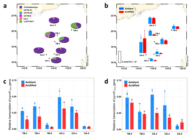 近日,我院史大林教授课题组与国内外合作者,在海洋酸化对优势固氮蓝藻束毛藻影响的研究上取得重要进展,相关成果以“Phosphate limitation intensifies negative effects of ocean acidification on globally important nitrogen fixing cyanobacterium”为题发表于Nature Communications。该研究揭示了磷限制加剧海洋酸化对束毛藻固氮作用的抑制效应及其机理,为理解和预测全球变化对海洋氮循环的影响及其生物地球化学效应提供了重要科学依据。