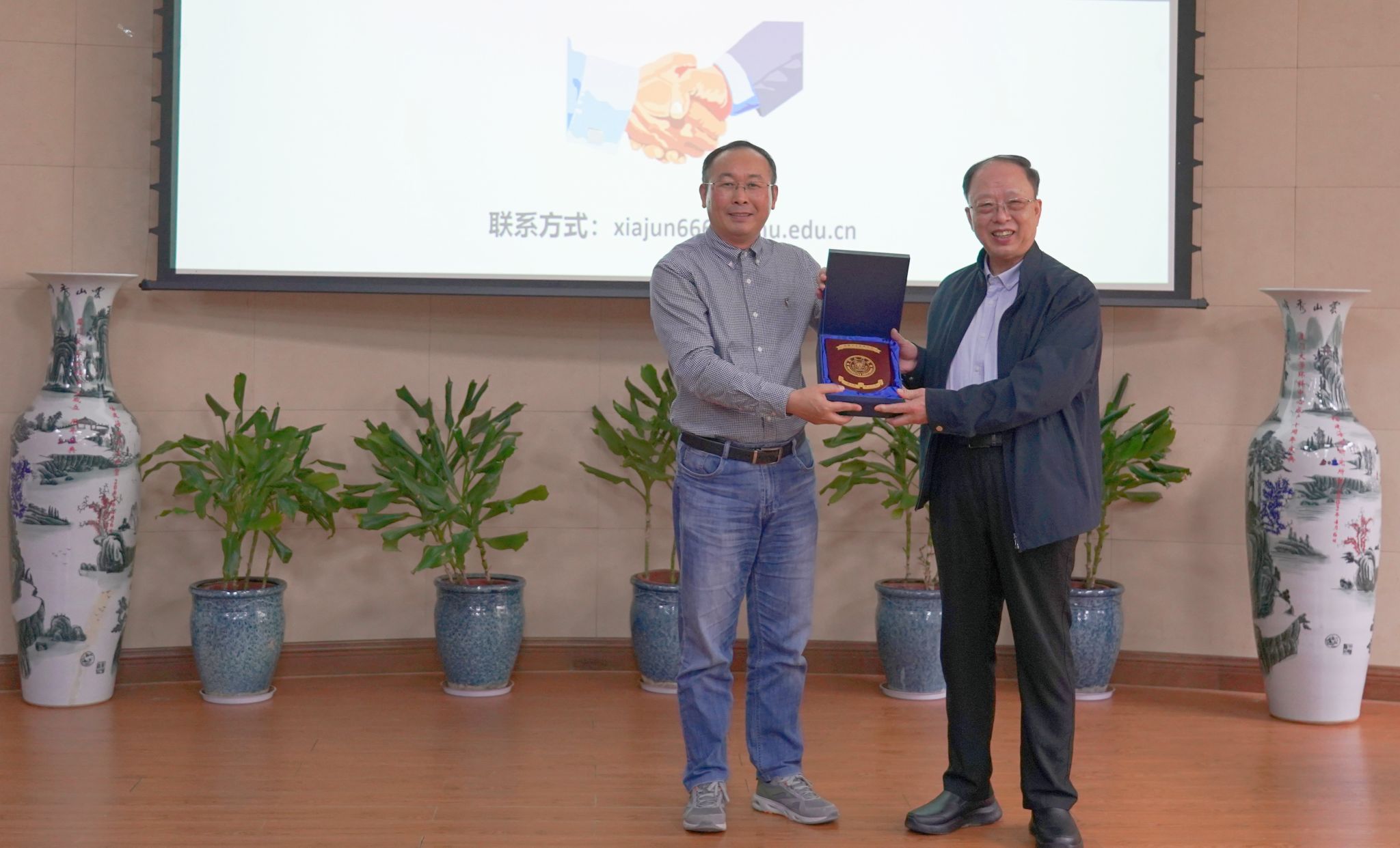 报告开始前,我院院长吕永龙教授向现场师生介绍了夏军教授的基本情况,并代表学校为其颁授“厦门大学南强讲座纪念牌”。