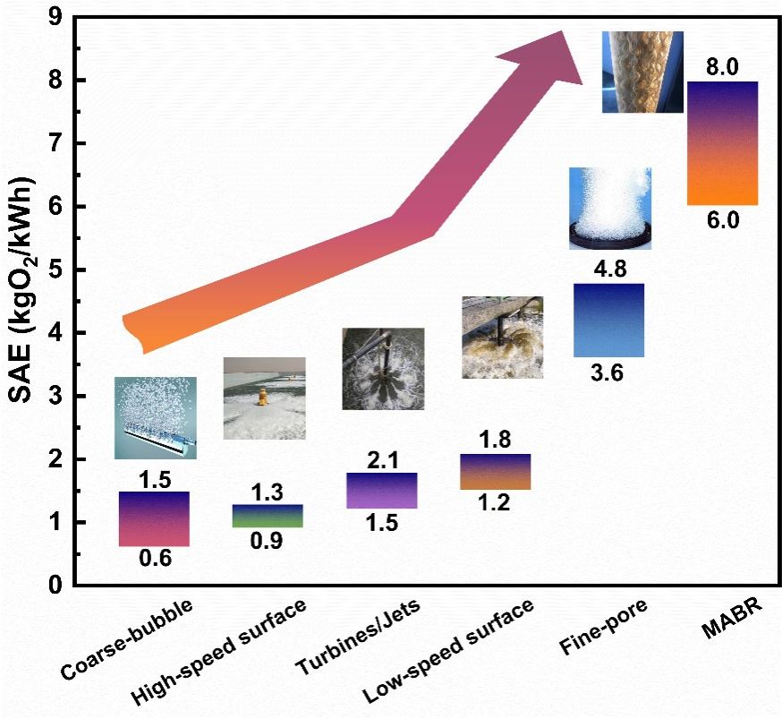 MABR是一种结合膜曝气技术与固定化生物膜技术的新型水处理技术。其中氧气和污染物分别以对流扩散形式从生物膜两侧进行传质并逐渐消耗,最终完成污染物的去除。相比较传统生物处理工艺,MABR有如下优势:①供氧形式为无泡曝气,理论O2利用率接近100%;②氧和污染物异向传质,生物膜内部具有独特的微生物群落分层,可实现同步硝化反硝化。MABR作为一种高效节能的脱氮技术,是污水处理节能减耗和提质增效的良好选择。