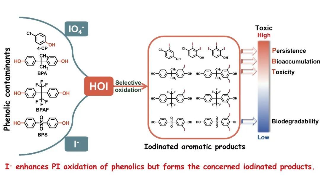 高碘酸盐技术逐渐成为可持续水净化和水体消毒的可能处理工艺。基于高碘酸盐(PI)的新兴氧化技术在高级氧化水处理领域中引发越来越多的关注,该技术适用于多种污染物的去除和多种应用场景。但随着研究发现,该技术可能会导致PI残留、引入碘酸盐和次碘酸等碘代副产物,因此仍存在应用安全性问题。同时,最近研究发现天然水质因子I-会活化多种高级氧化体系(如过硫酸盐、高锰酸盐)进行污染物去除进而产生有毒的碘代有机副产物。那么,I-与PI又会如何反应?是否会带来更高的环境风险?PI在应用中又该何去何从?