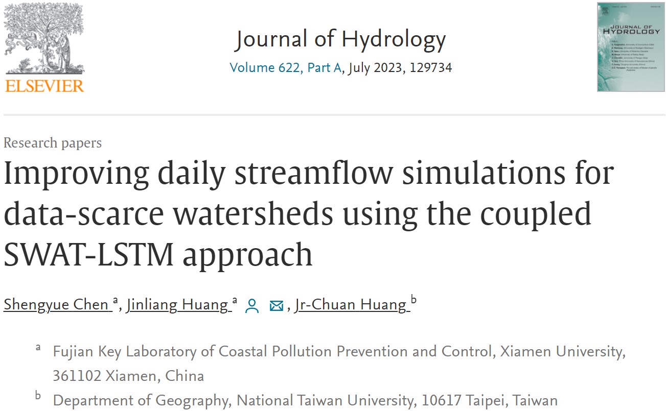 Chen S, Huang J, Huang J C. Improving daily streamflow simulations for data-scarce watersheds using the coupled SWAT-LSTM approach[J]. Journal of Hydrology, 2023: 129734.