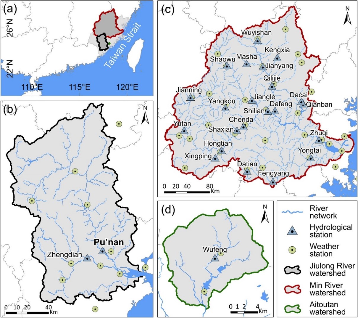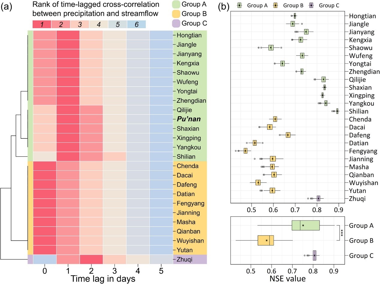 本研究构建了一个耦合建模方法,通过将过程模型SWAT和可解释机器学习模型LSTM相结合,应用于无资料流域和缺资料流域逐日径流量模拟,并在福建省25个水文站点评估该方法的表现。本研究旨在解决两个问题:(1)基于机器学习模型的视角,流域过程中径流变化的关键驱动因素是什么?(2) 在数据稀缺流域,过程模型和机器学习模型的耦合是否能带来令人满意的径流模拟表现?这项研究展示了本耦合建模方法可有效地模拟数据稀缺流域逐日径流,极具应用潜力。
