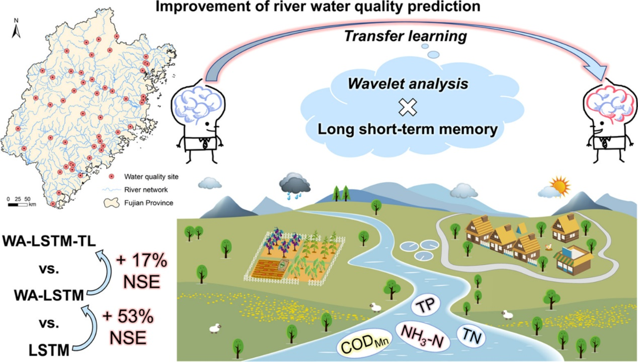 近日,我院黄金良教授课题组在国际期刊Water Research上在线发表了题为“A coupled model to improve river water quality prediction towards addressing non-stationarity and data limitation”的研究论文。研究构建了“小波分析-深度学习LSTM模型-迁移学习”的耦合建模方法,展现其解决河流水质预测中的非稳态模式和数据受限难题的潜力。