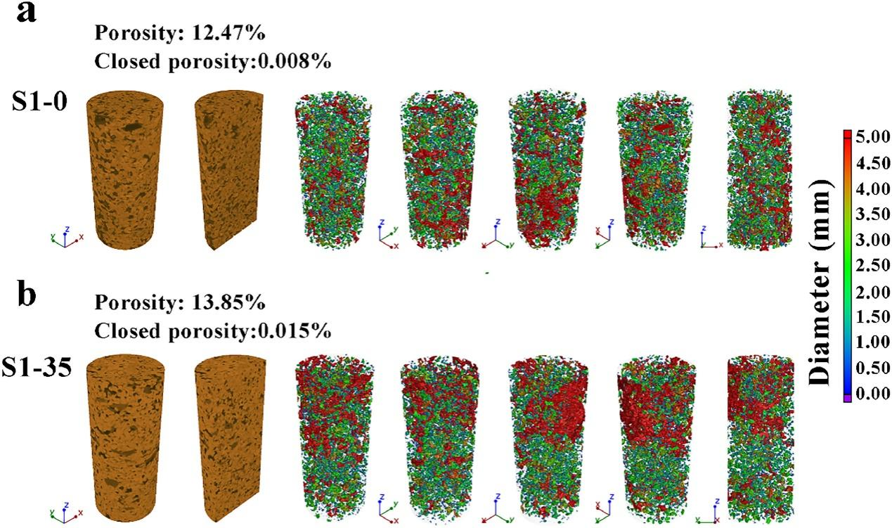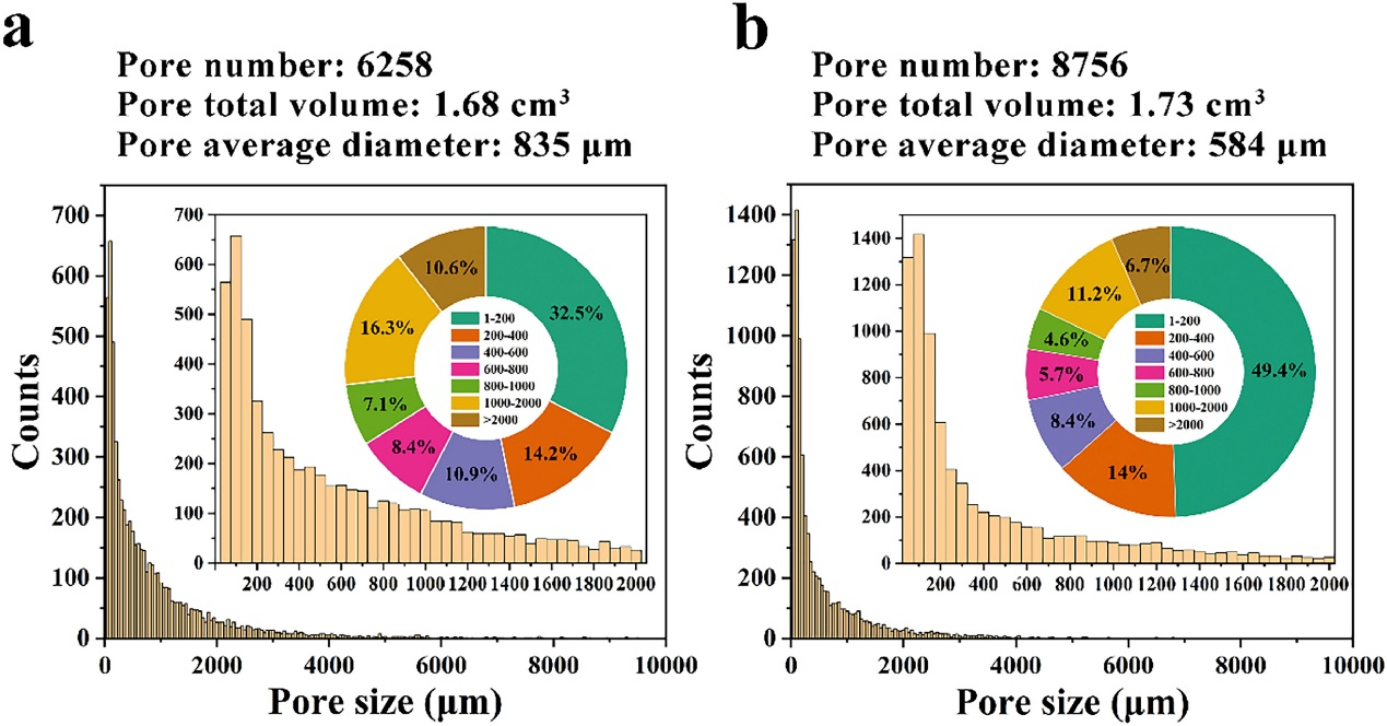 图5 0PSU(a)和35PSU(b)土壤迁移柱孔径分布