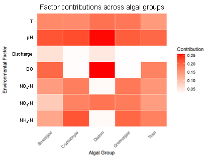 图3 多种环境因子对不同藻类群生物量变化的相对重要性