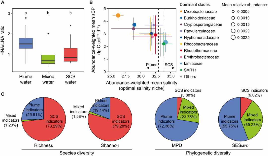 Liu Y, Cai S, Fan W, Xiao W, Liu X, Laws E, Huang B. Coupling between bacterial phylogenetic diversity and heterotrophic productivity in a coastal ecosystem affected by estuarine plumes. ISME Communications 0, 0 (2025). https://doi.org/10.1093/ismeco/ycaf102.