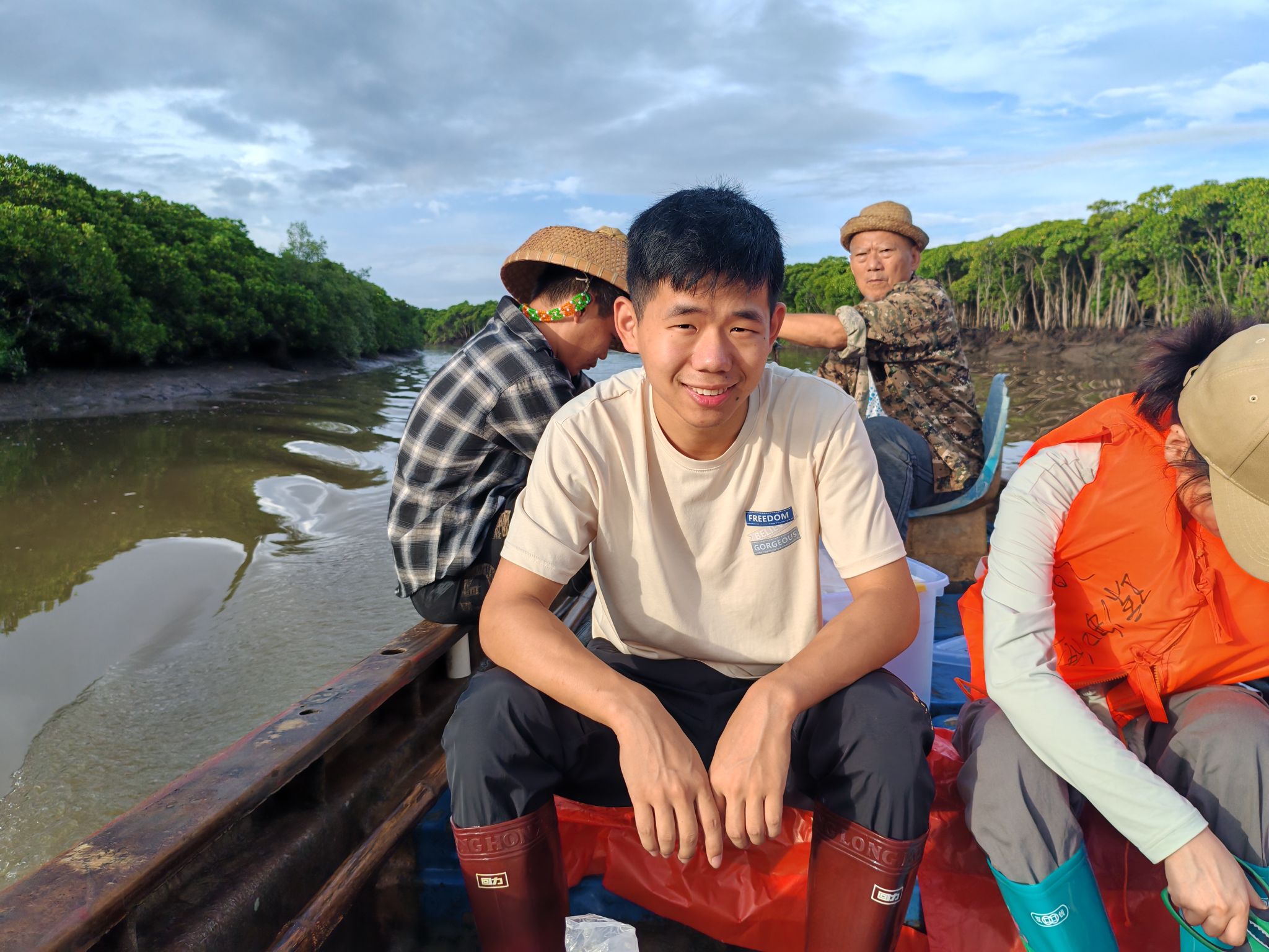 戴泽涛在海南东寨港乘船采样