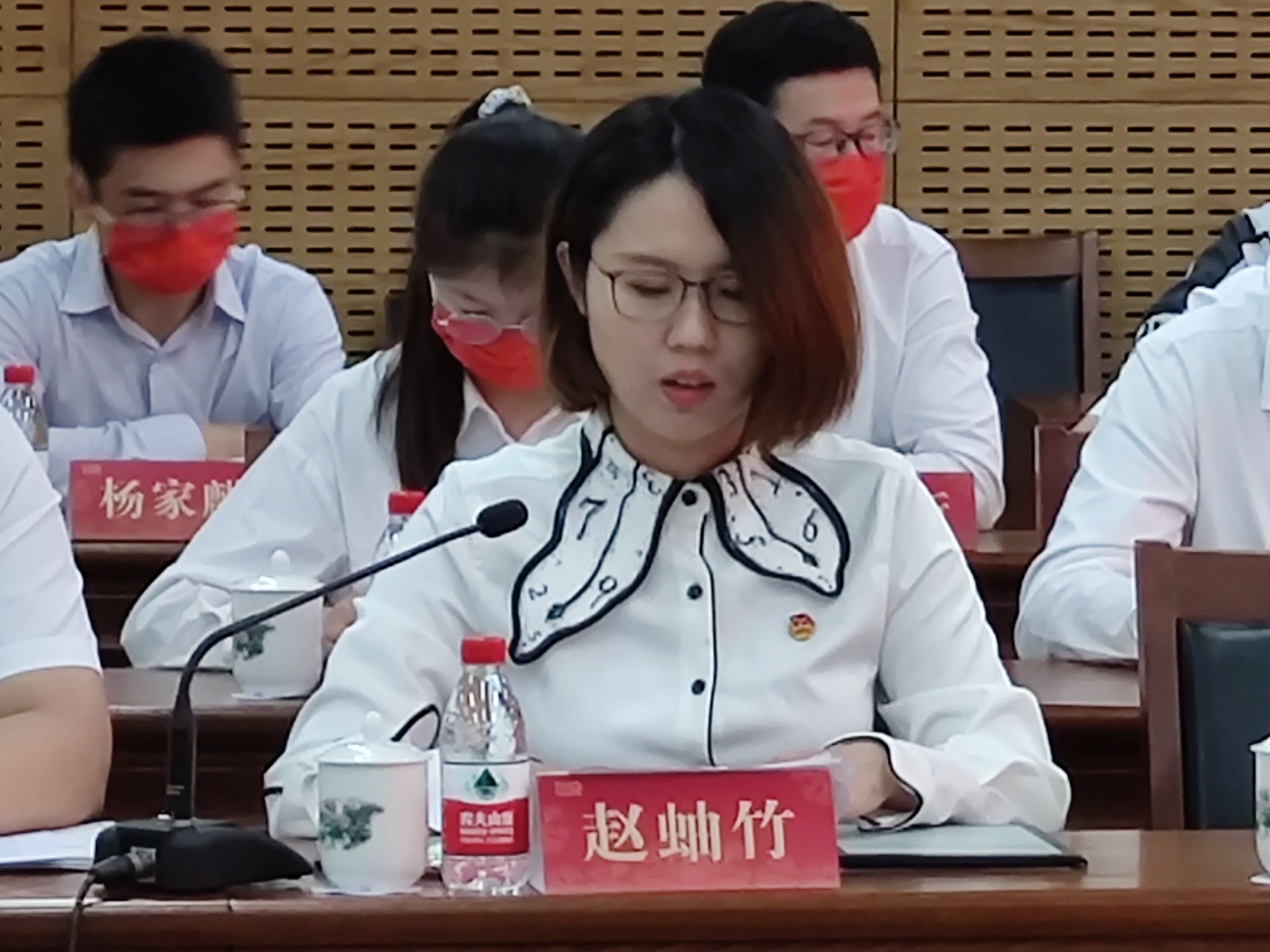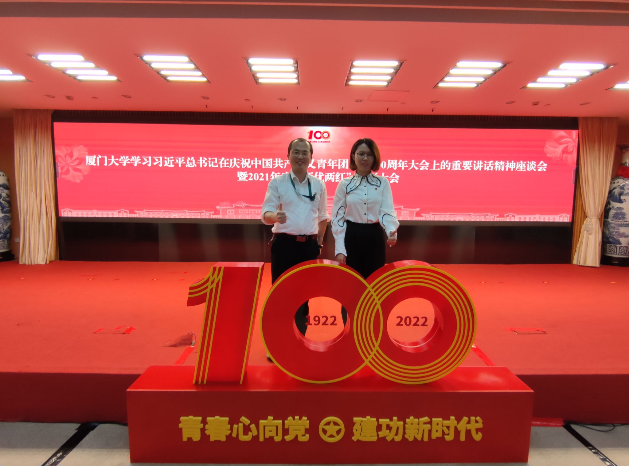 赵蚰竹同学克服听障困难,自立自强,努力拼搏,成绩优异,是我院优秀学生代表,目前是“全国向上向善好青年”“2021感动厦门十大人物”推荐人选。会上她围绕当代青年的担当与使命进行发言。她认为,作为新时代的中国青年要身体力行地践行习近平总书记的“牢记党的教诲,立志民族复兴,不负韶华,不负时代,不负人民,在青春的赛道上奋力奔跑,争取跑出当代青年的最好成绩!”的嘱托和期望,誓与祖国共奋进,青春逐梦新时代!作为厦门大学的学子,应秉持科教报国的精神,在实现中华民族伟大复兴中国梦的新征程上奋勇前进。