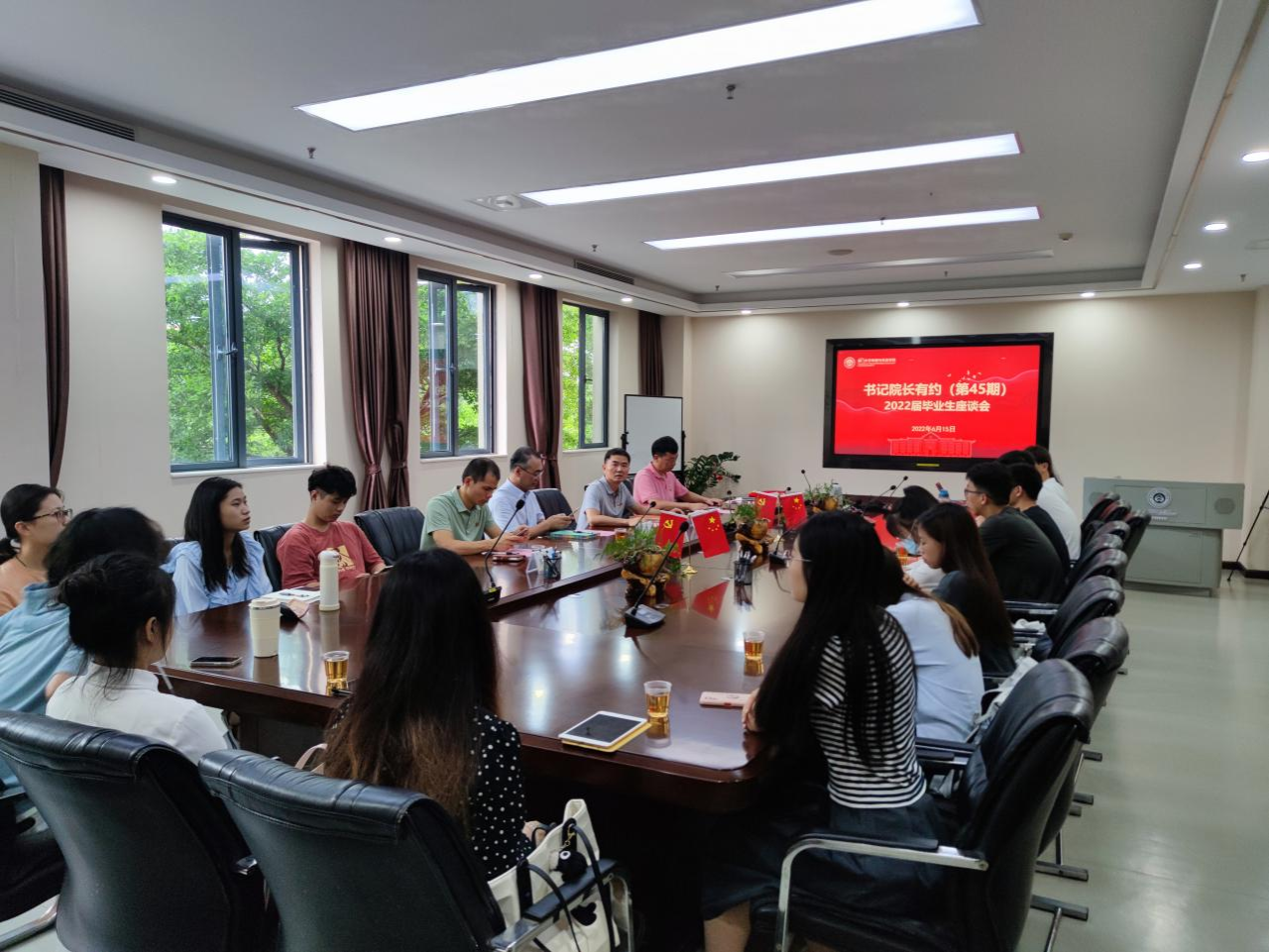 6月15日上午,为了促进学院更好发展,我院举办2022届毕业生专场座谈会暨第45期 “书记院长有约”活动,本次会议主题是“建言·献策”助力学院发展。院党委书记张明智、副院长于鑫和辅导员与学生座谈交流。党委副书记蔡虎堂主持会议。