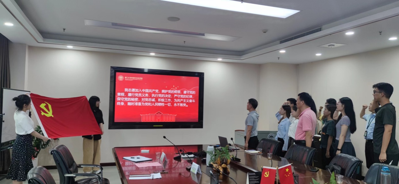 座谈会最后,全体党员面向党旗,重温入党誓词。