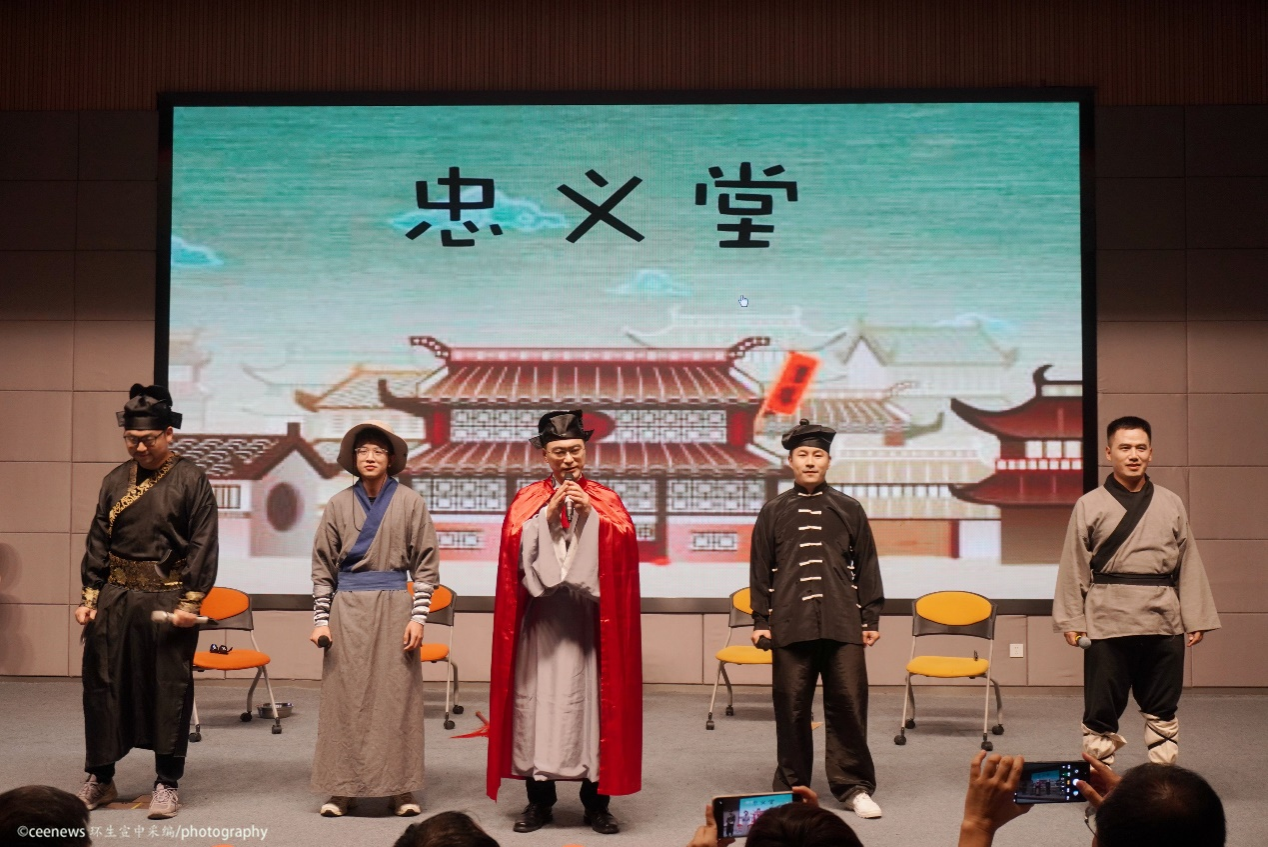 由于鑫老师带领的“跟着师傅去打虎”组合自编自导自演了小品《大话科研之水浒英雄榜》,内容生动活泼,语言诙谐幽默,引来观众阵阵爆笑、掌声不断。