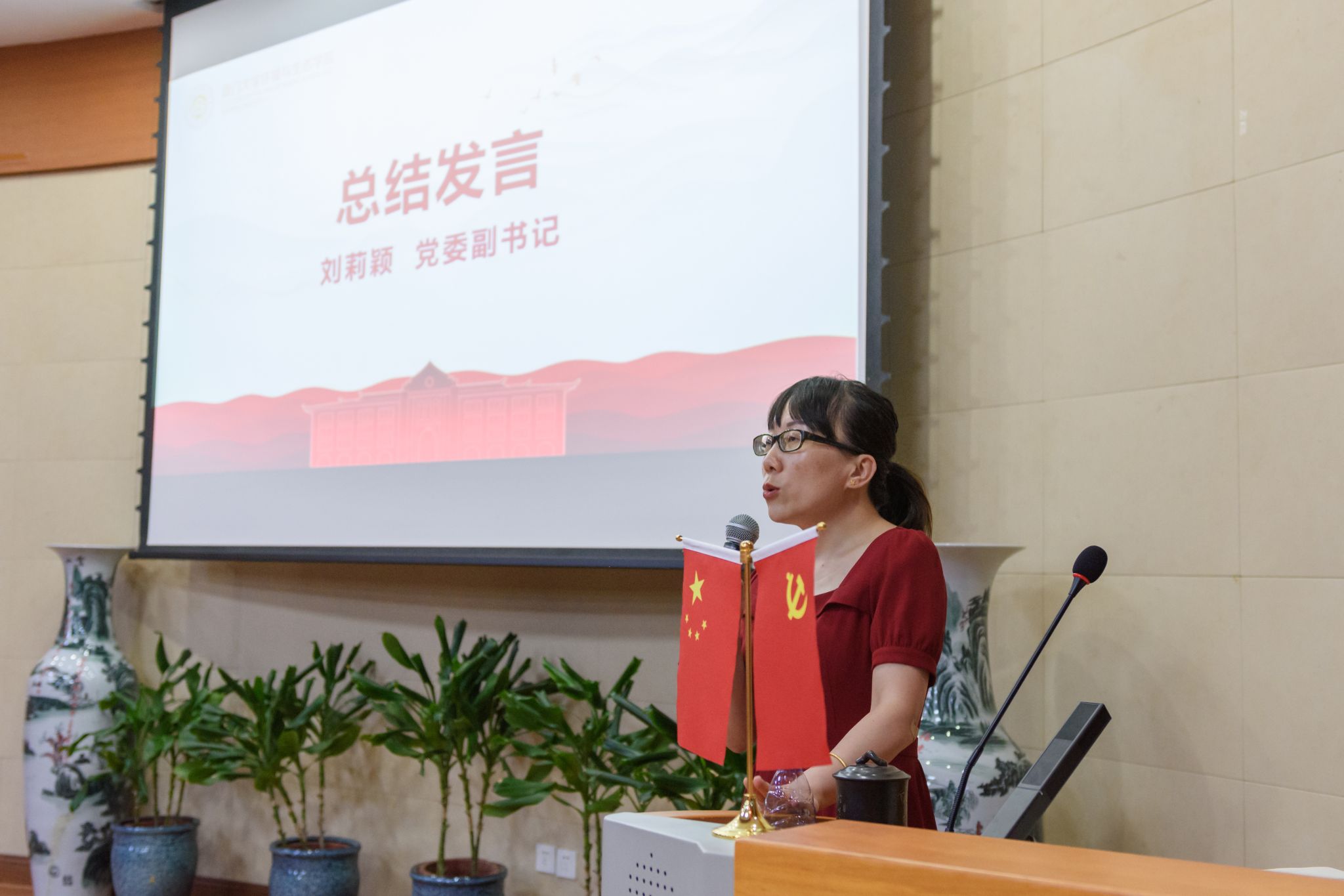 颁奖结束后,刘莉颖老师进行总结讲话。刘老师对团总支研究生会本学年开展的工作中给予充分肯定,感谢各位学生干部的努力和奉献;同时,回顾自己在翔安校区多年工作经历,并结合自身丰富学生工作经验,精准点评各部门工作总结,耐心答疑各部门提出的问题进行,对团总支研究生会下学年整体工作提出建议和期望。