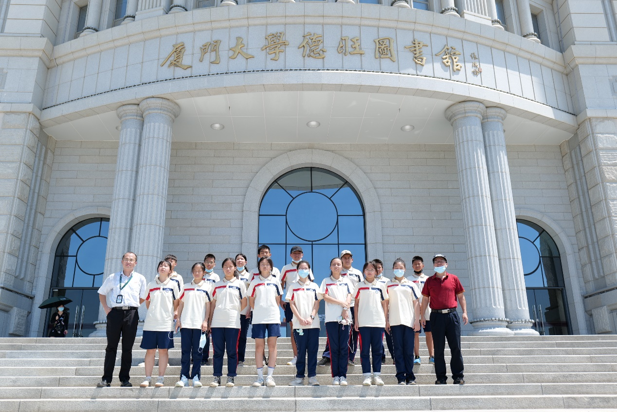 结束八闽园科普之行后,大家前往参观德旺图书馆。德旺图书馆位于翔安校区中央位置,延续嘉庚建筑中西合璧、一主四从的风格,收藏图书印本资源300万余册。在图书馆陈莎农老师的带领下,刘五店师生一行参观了校史馆、香山书房、摄影棚、棋盘室和数学与智力玩具空间等,丰富的文献资源和优良的学习环境使厦大成为同学们向往的知识殿堂。