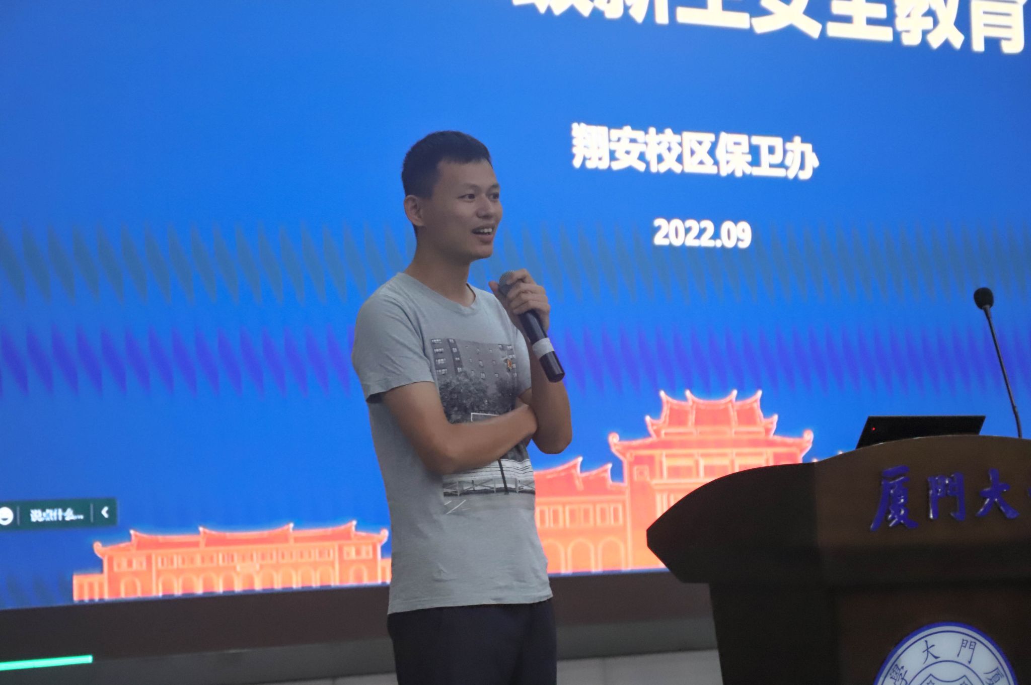9月7日下午,翔安校区保卫办周成明为新生们带来安全教育主题讲座,内容涵盖消防安全、人身安全、交通安全、防诈反诈等实用的技能和知识。周老师用诙谐的语言和生动的事例让同学们切身感受到校园内可能存在的各种安全隐患,为同学们敲响安全的警钟。